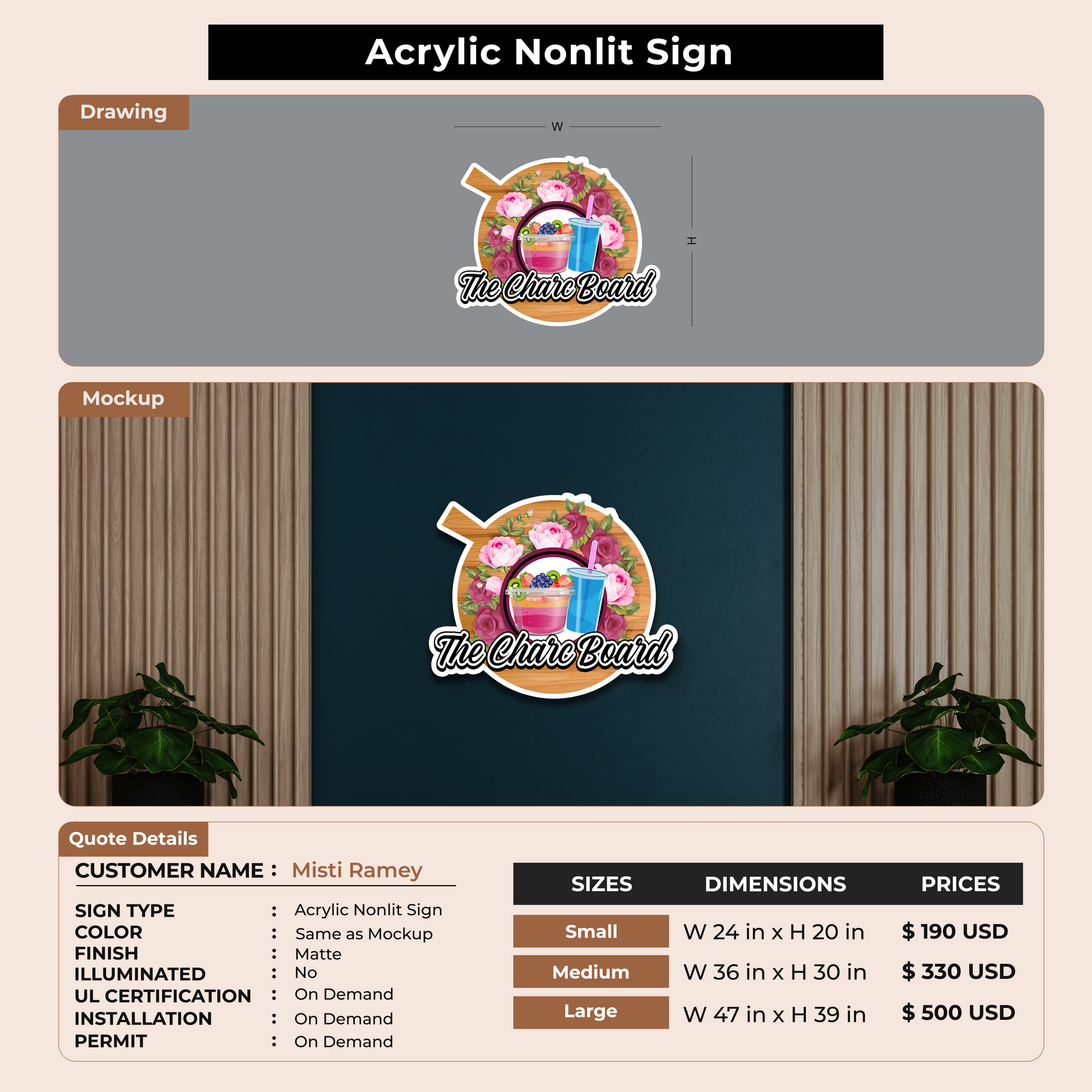 Acrylic Non-lit Sign for Misti Ramey