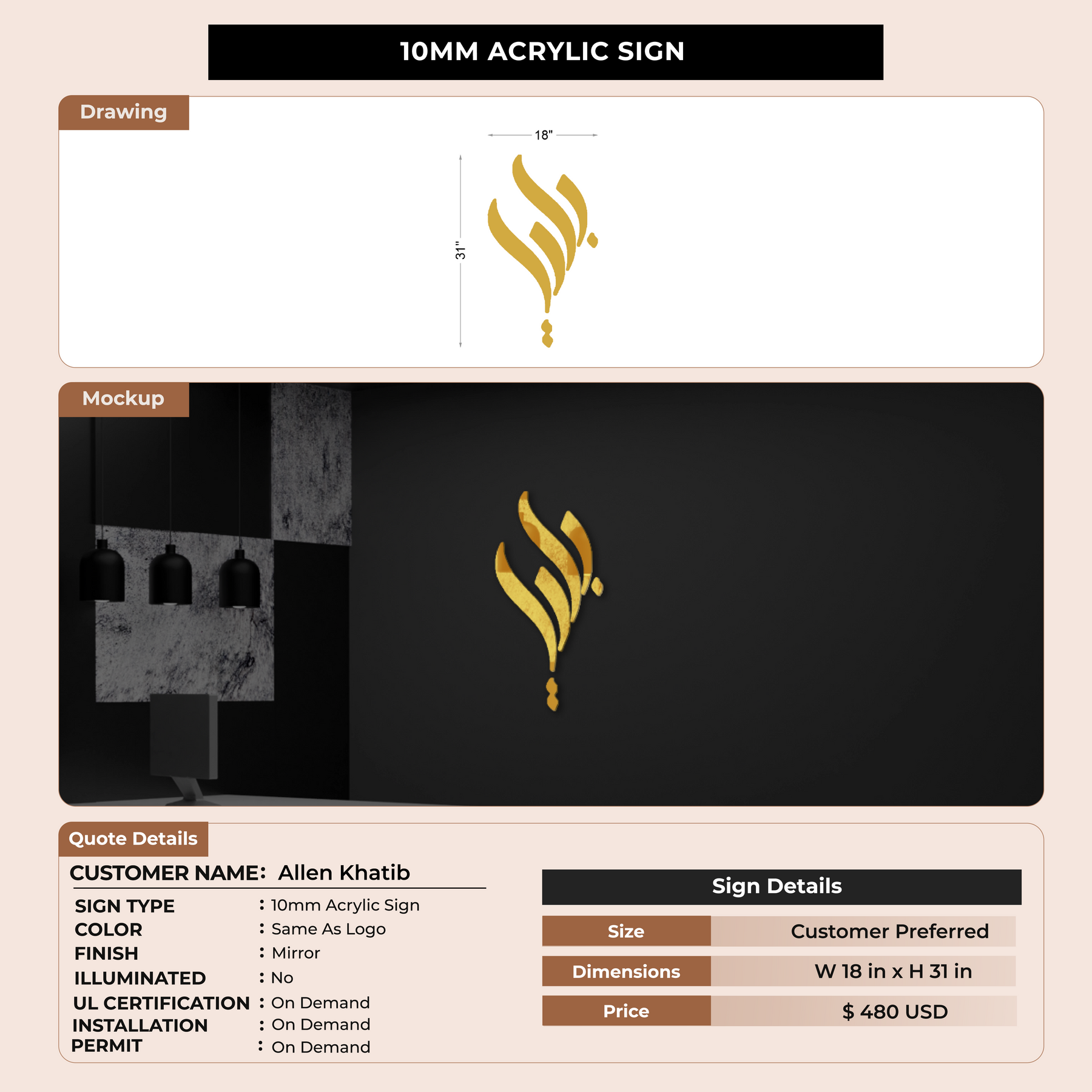 Crafted with premium material, this signage will elevate your business image, precisely mirroring your logo for a professional look.
