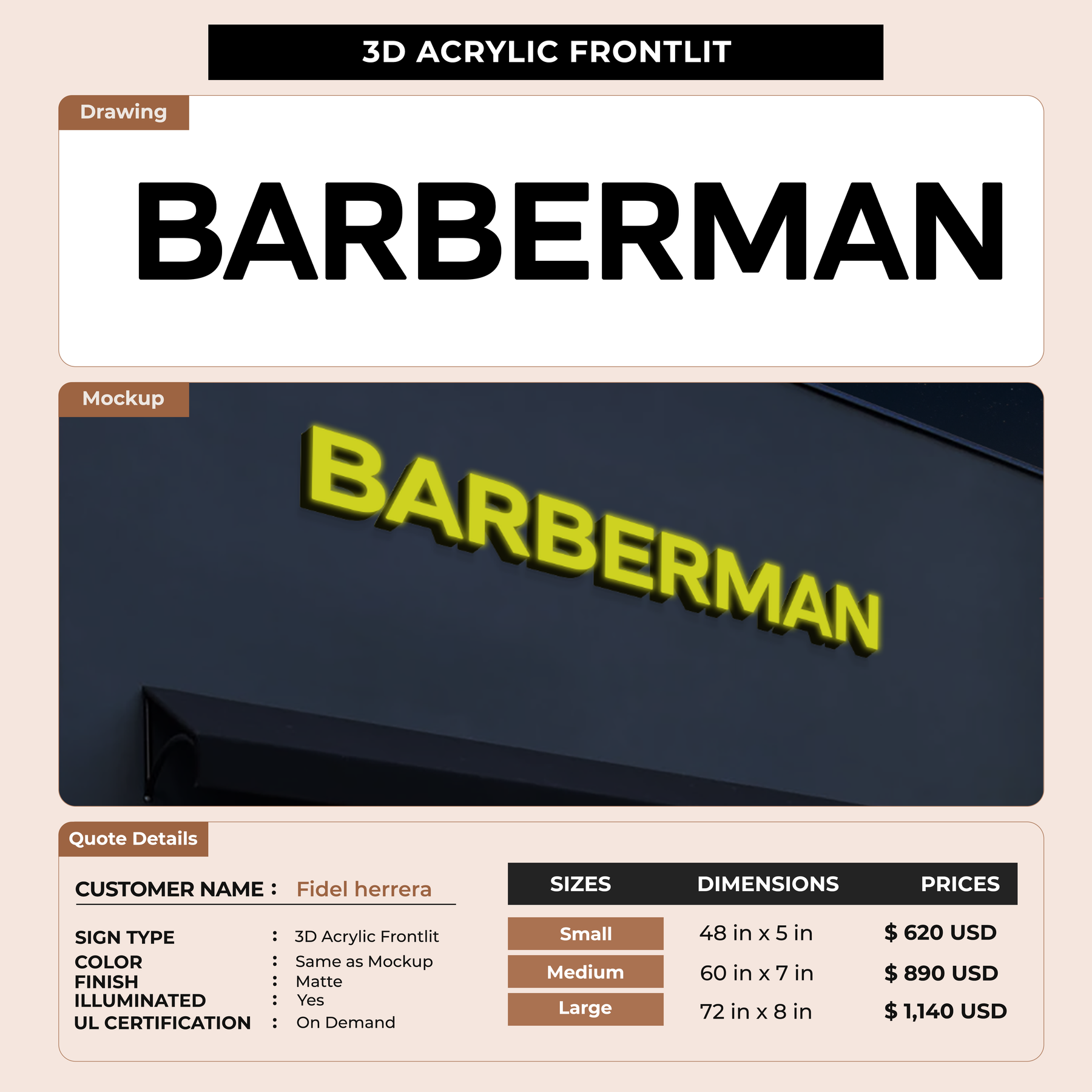 Crafted with premium material, this signage will elevate your business image, precisely mirroring your logo for a professional look.
