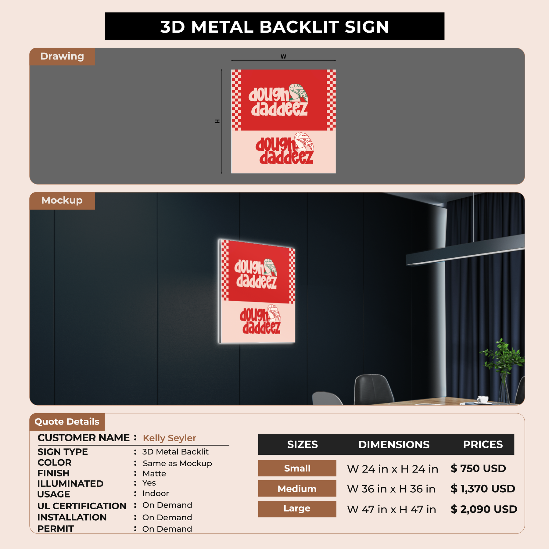 Crafted with premium material, this signage will elevate your business image, precisely mirroring your logo for a professional look.