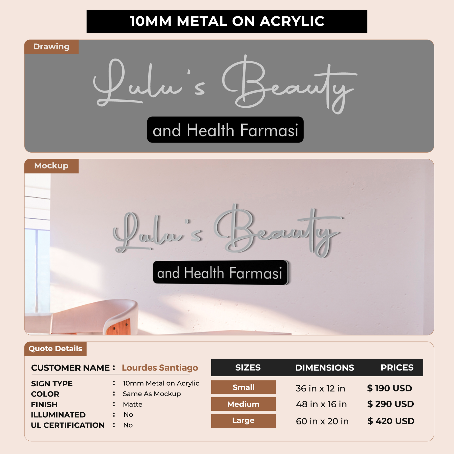 Business signage for Lourdes Santiago