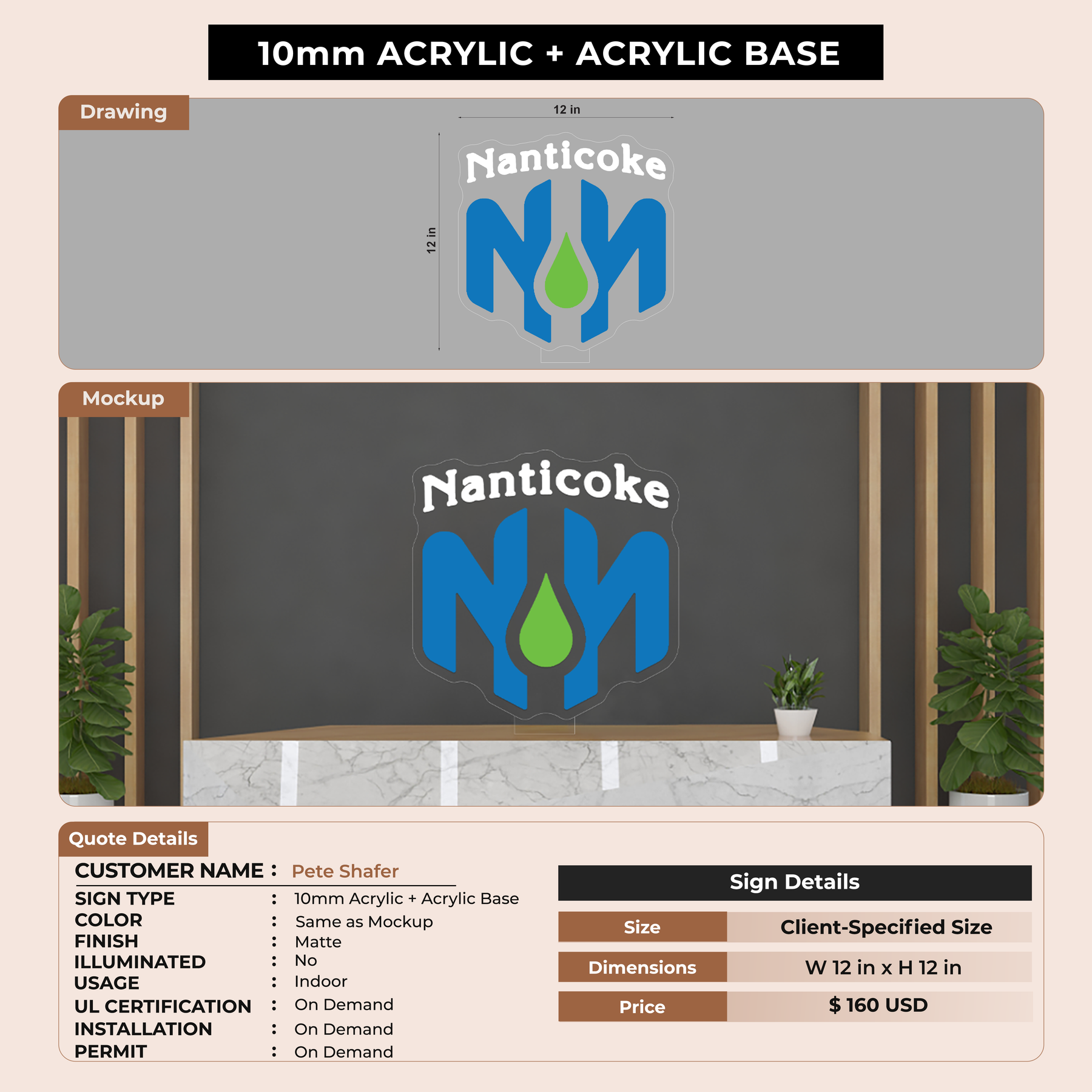10mm Acrylic with Acrylic Base for Pete Shafer