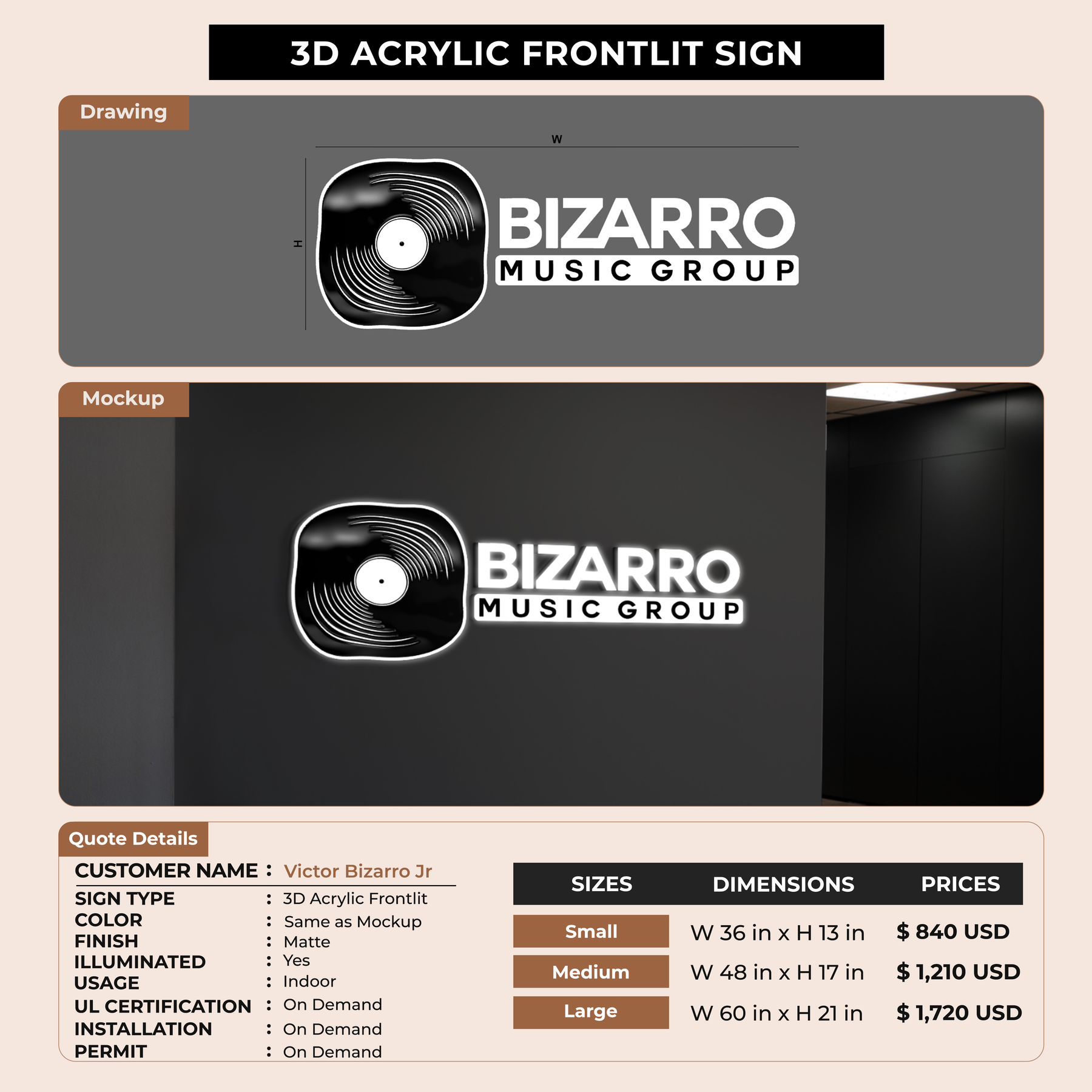 Business Signage for Victor Bizarro Jr