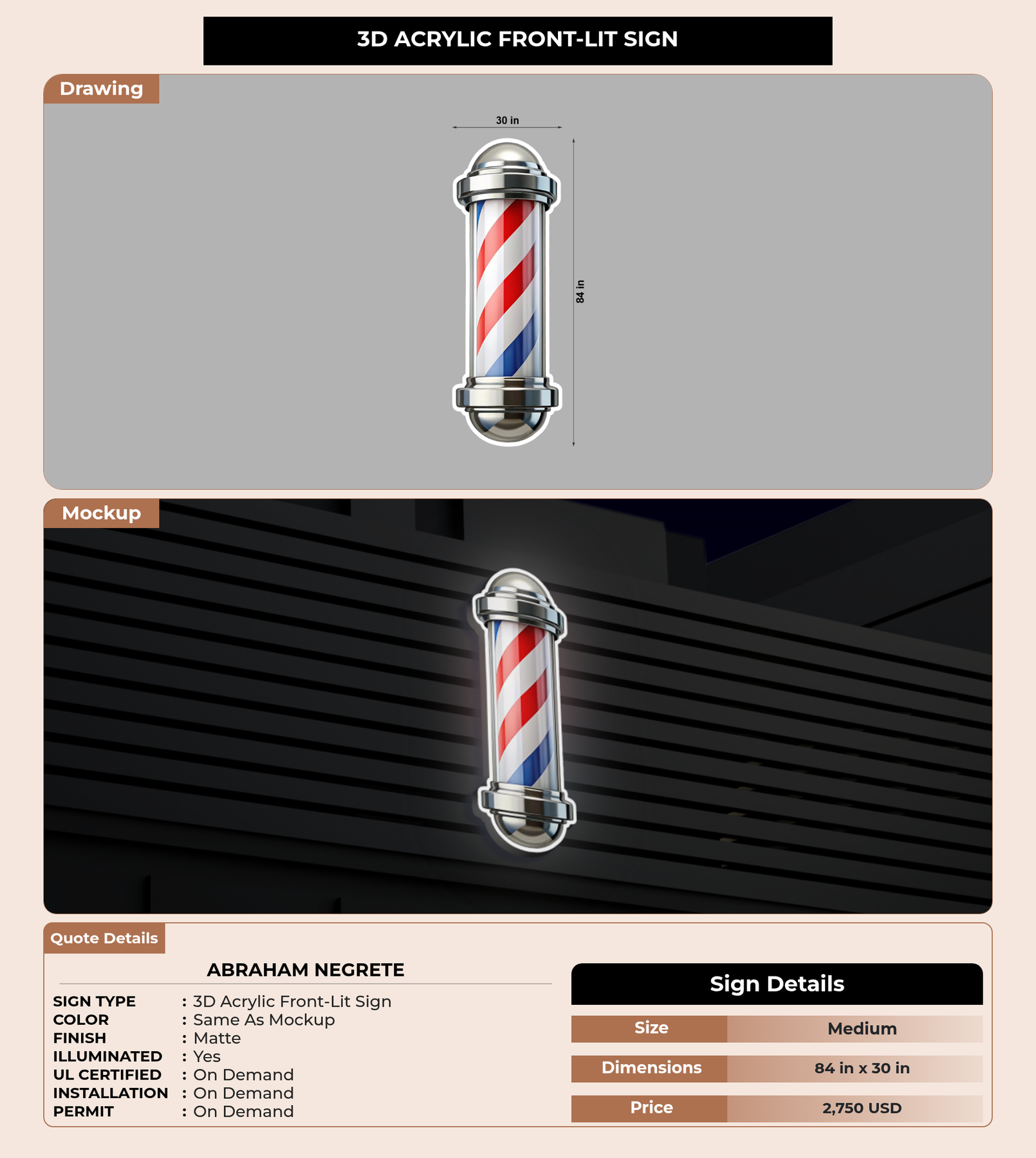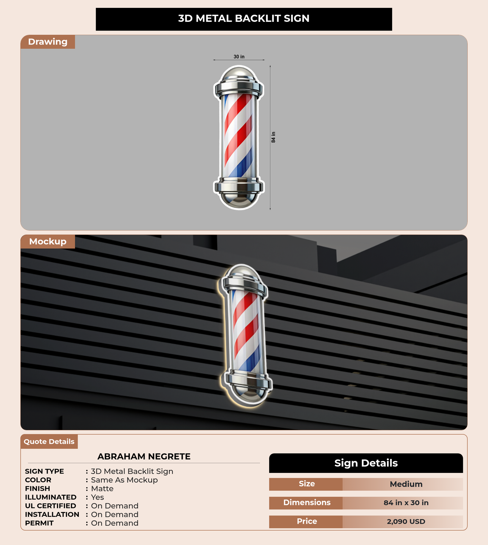 Eye-catching custom 3D sign for Abraham Negrete