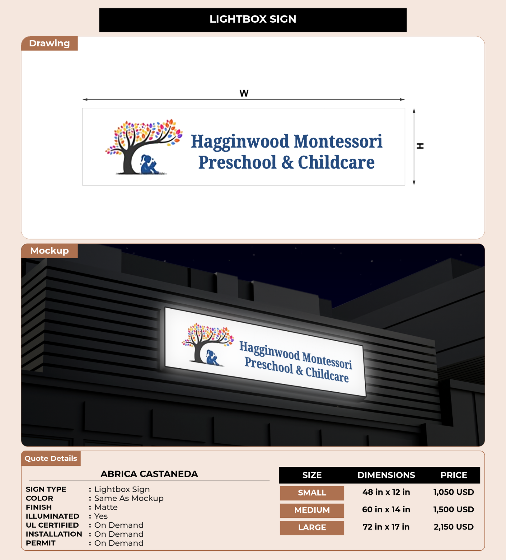 Eye-catching custom 3D sign for Abrica Castaneda