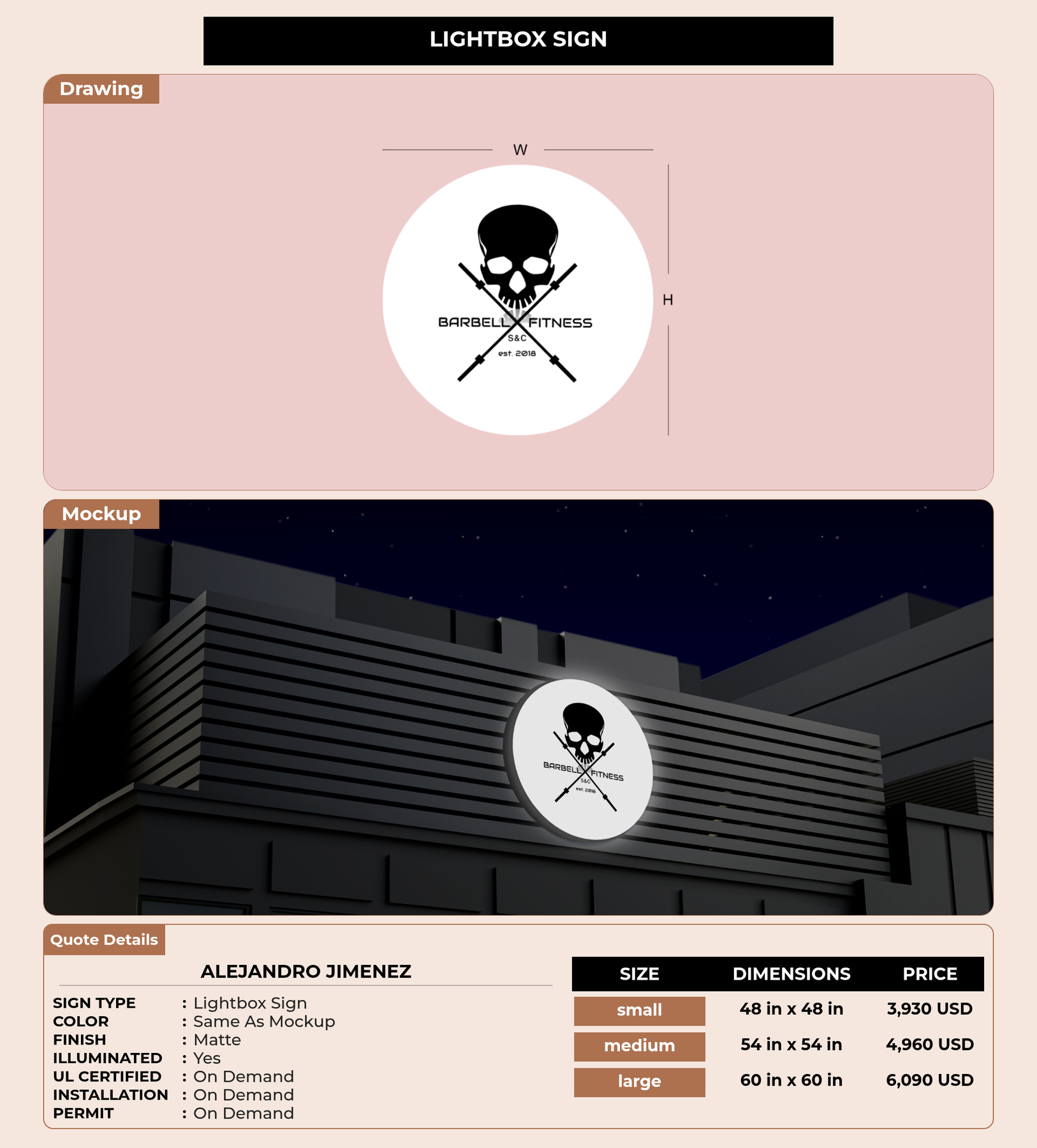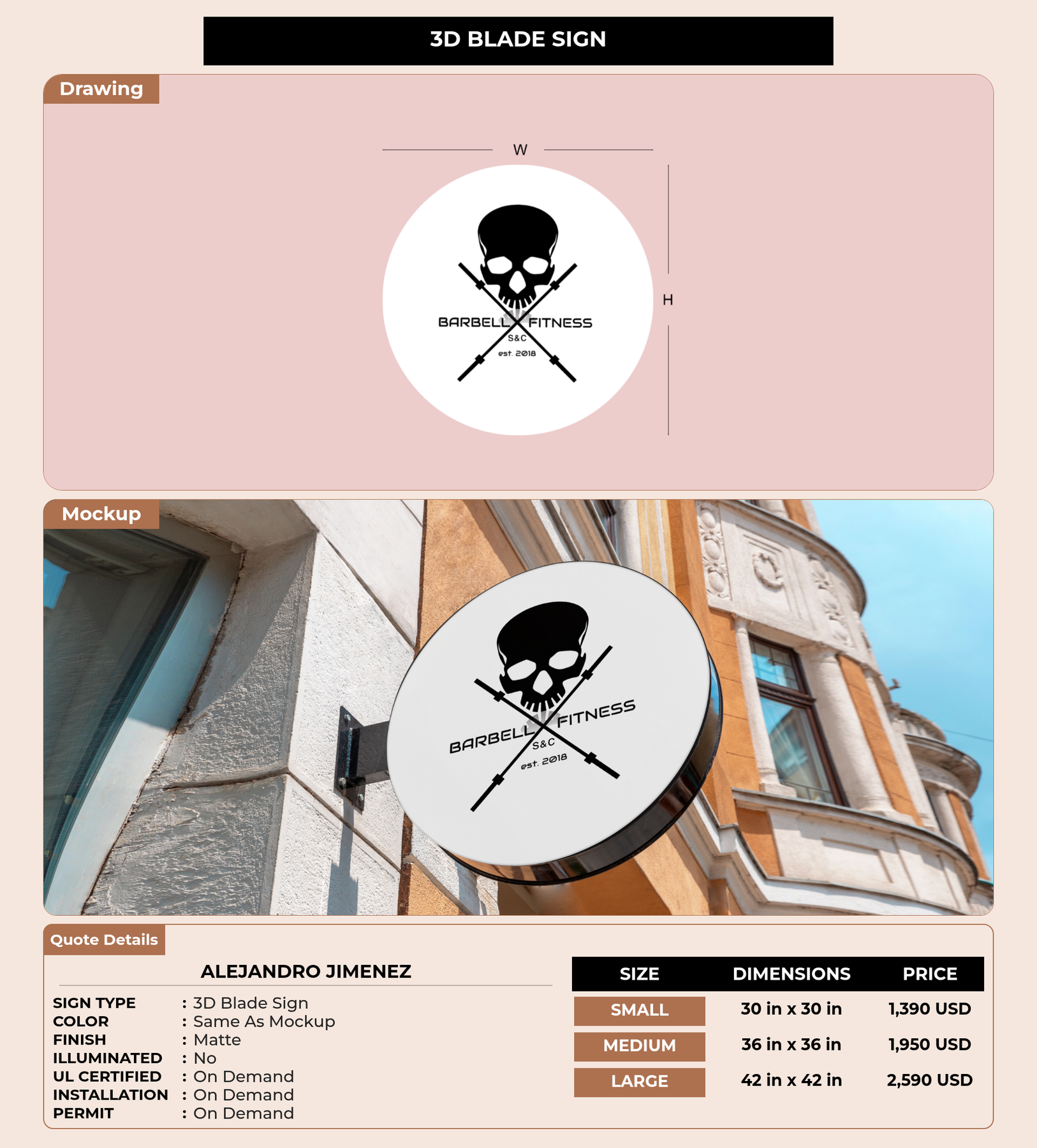 Eye-catching custom 3D sign for Alejandro Jimenez