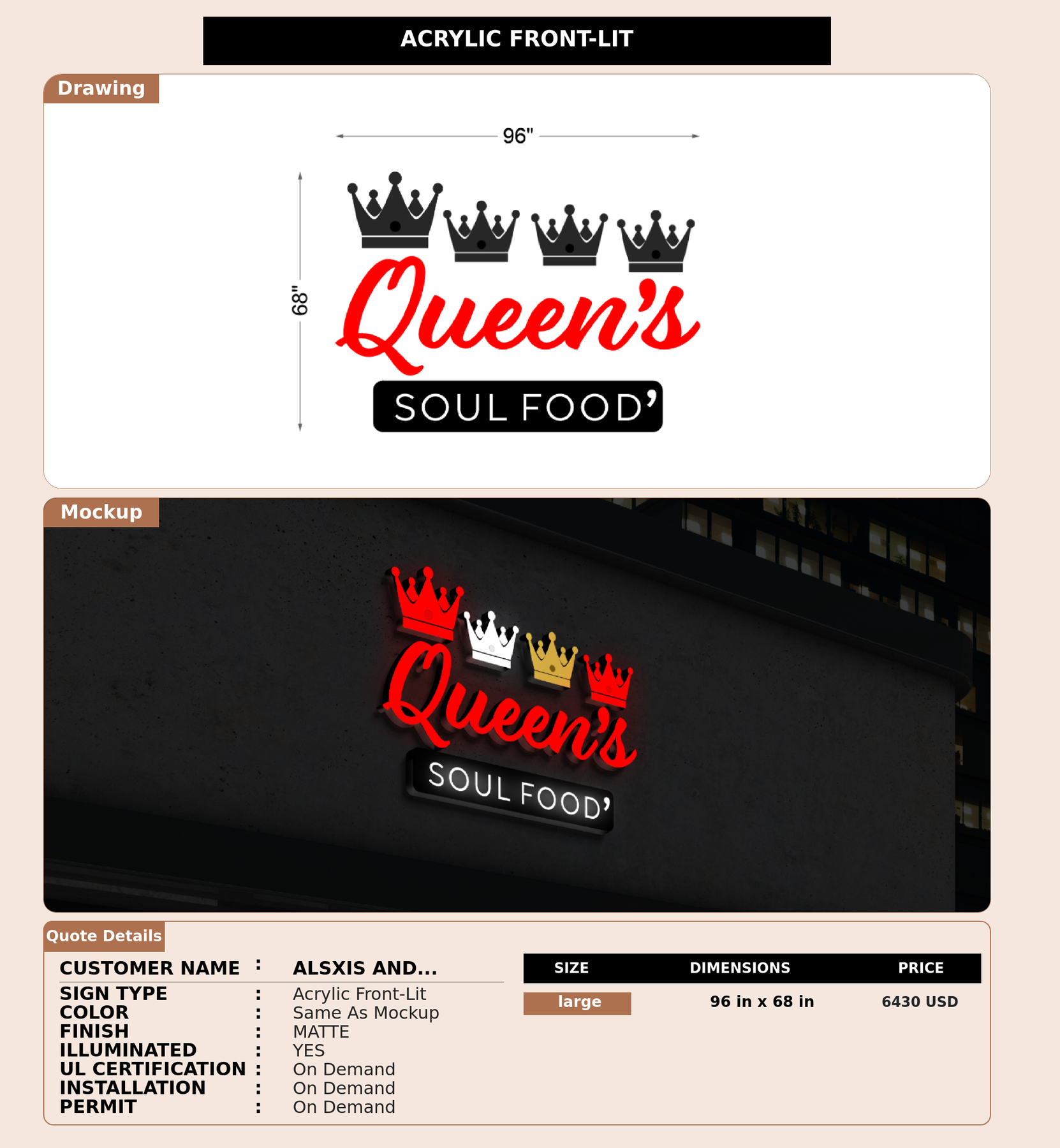Crafted with premium material, this signage will elevate your business image, precisely mirroring your logo for a professional look.