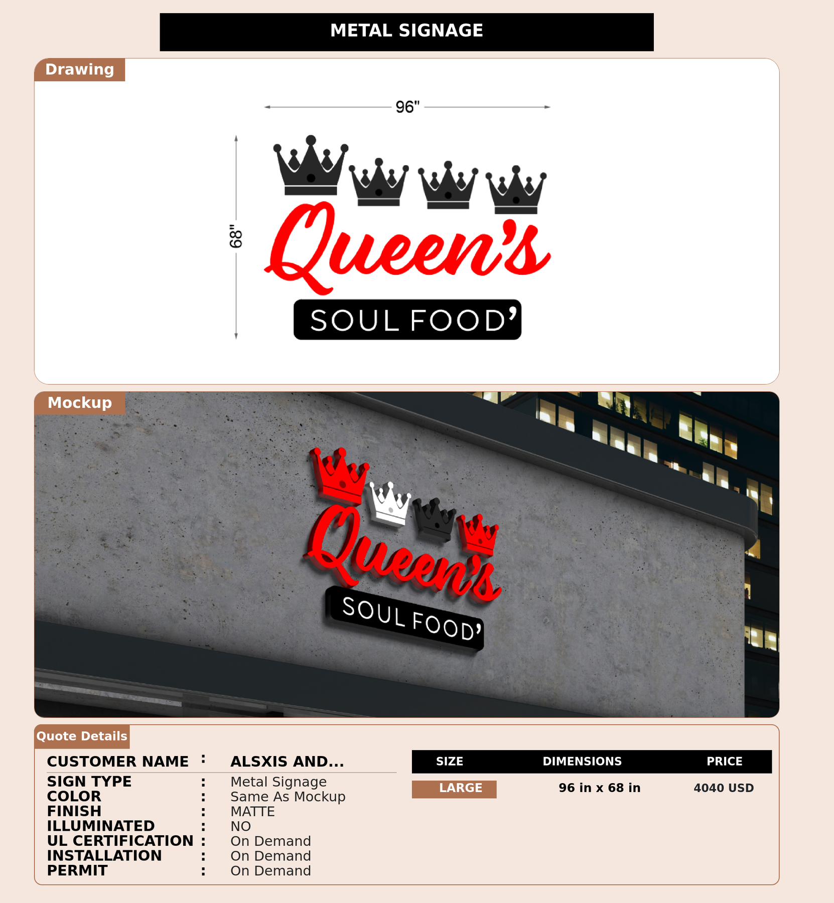 Installation services are available for an additional fee, depending on your location and the complexity of the signage.