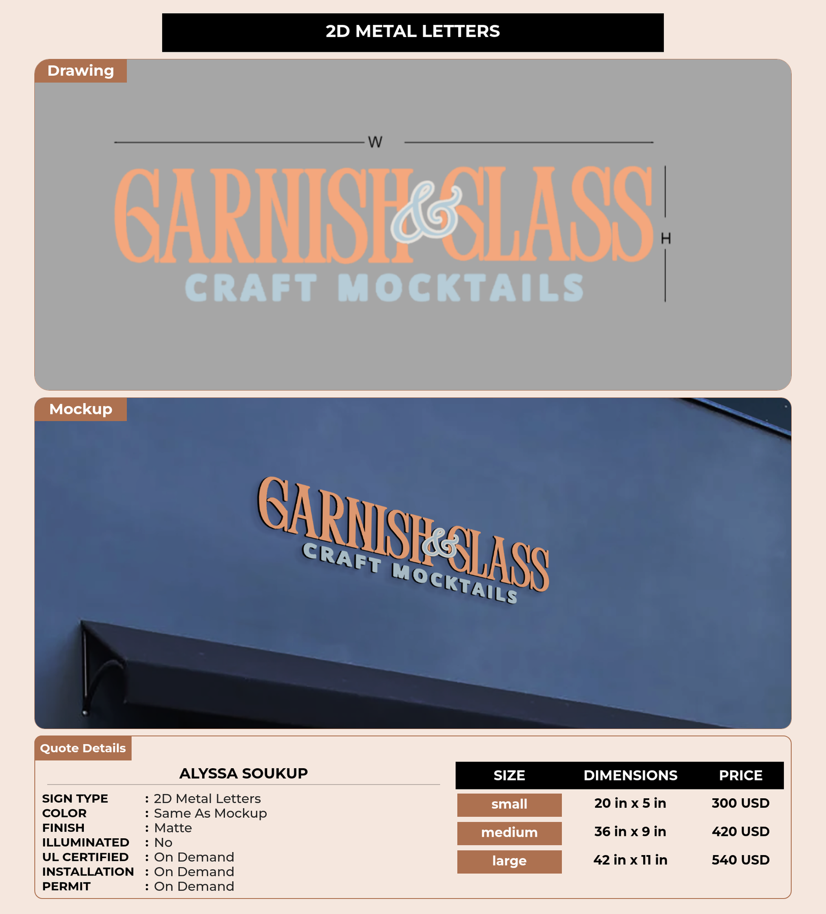 Crafted with premium material, this signage will elevate your business image, precisely mirroring your logo for a professional look.