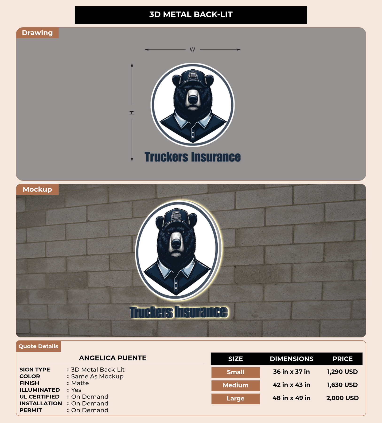 Eye-catching custom 3D sign for Angelica Puente