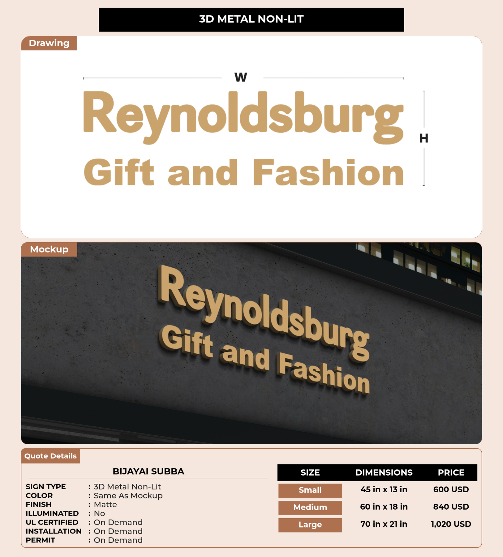 Eye-catching custom 3D sign for bijayai subba
