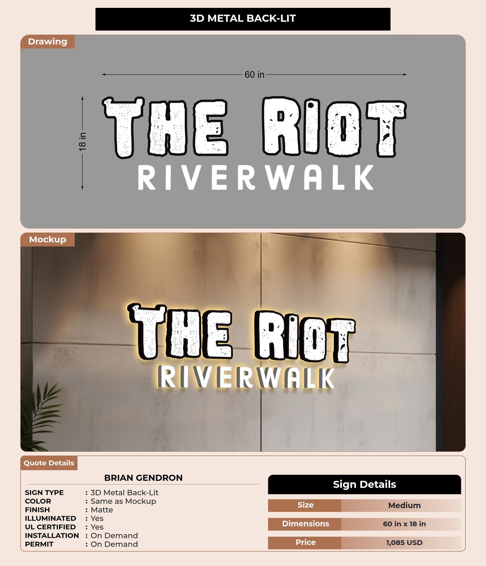 Crafted with premium material, this signage will elevate your business image, precisely mirroring your logo for a professional look.