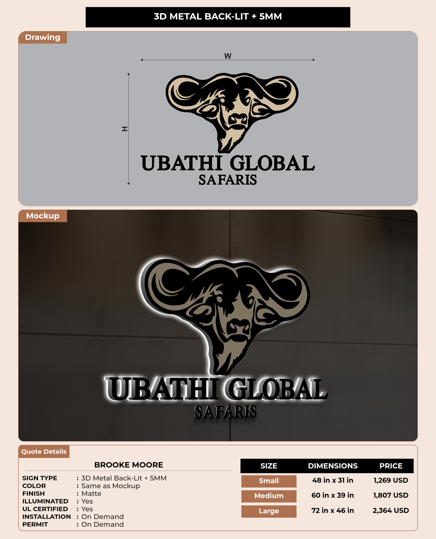 Eye-catching custom 3D sign for Brooke Moore