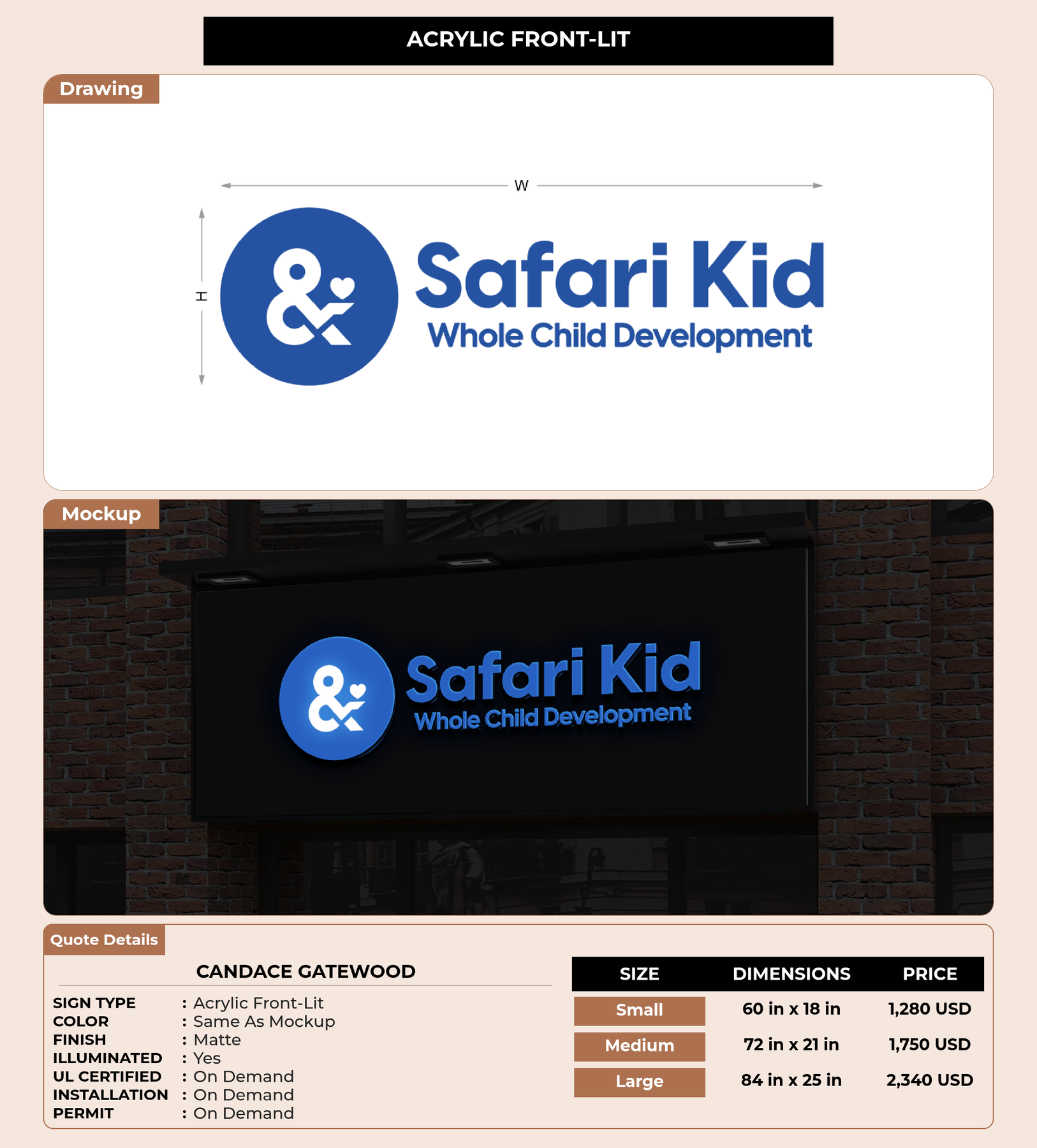 Enhance your business presence with our expertly crafted signage, made from top-quality material, to ensure longevity and durability. Fully customizable to reflect your unique brand identity, our signage offers a professional and polished appearance. Easy to install and low maintenance, it’s the perfect addition to any business setting. Trust us to deliver a product that not only meets but exceeds your expectations.