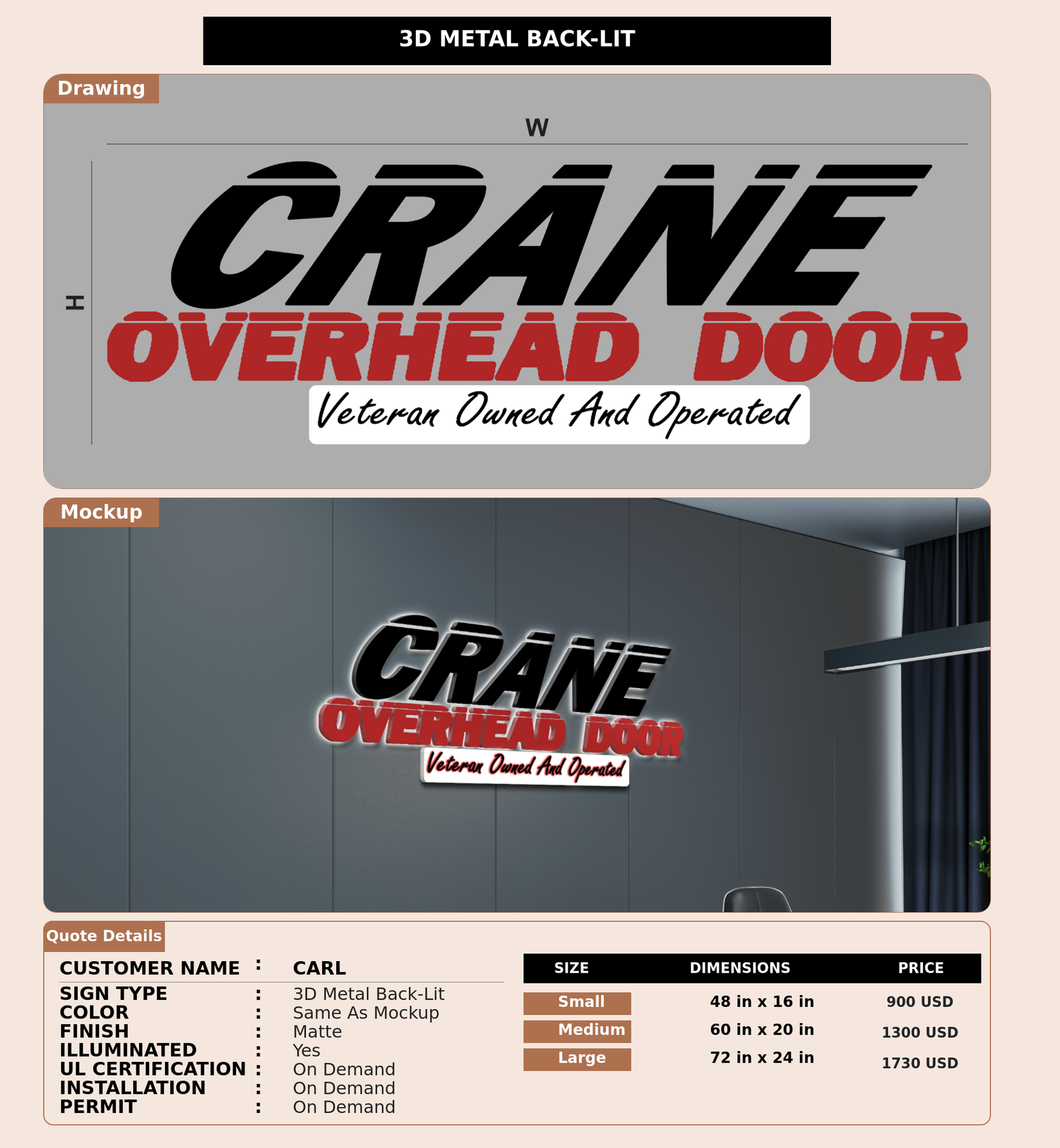 Crafted with premium material, this signage will elevate your business image, precisely mirroring your logo for a professional look.