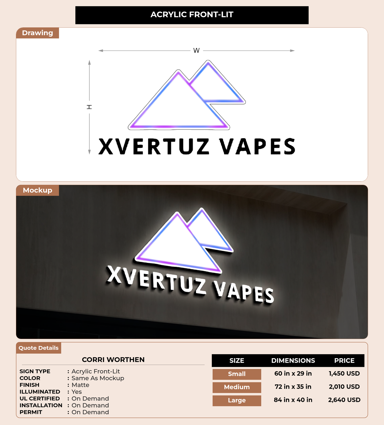 Enhance your business presence with our expertly crafted signage, made from top-quality material, to ensure longevity and durability. Fully customizable to reflect your unique brand identity, our signage offers a professional and polished appearance. Easy to install and low maintenance, it’s the perfect addition to any business setting. Trust us to deliver a product that not only meets but exceeds your expectations.