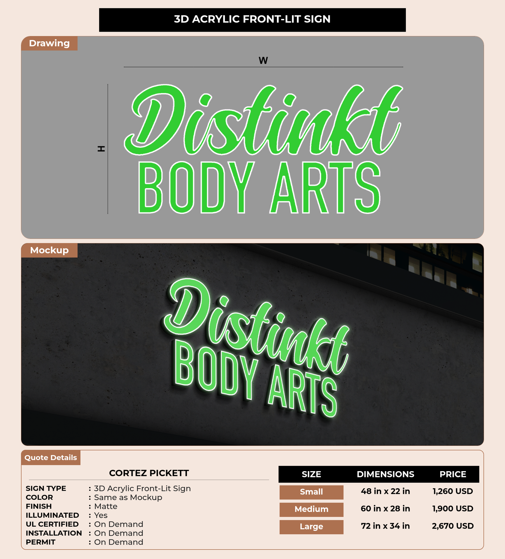 Eye-catching custom 3D sign for Cortez Pickett
