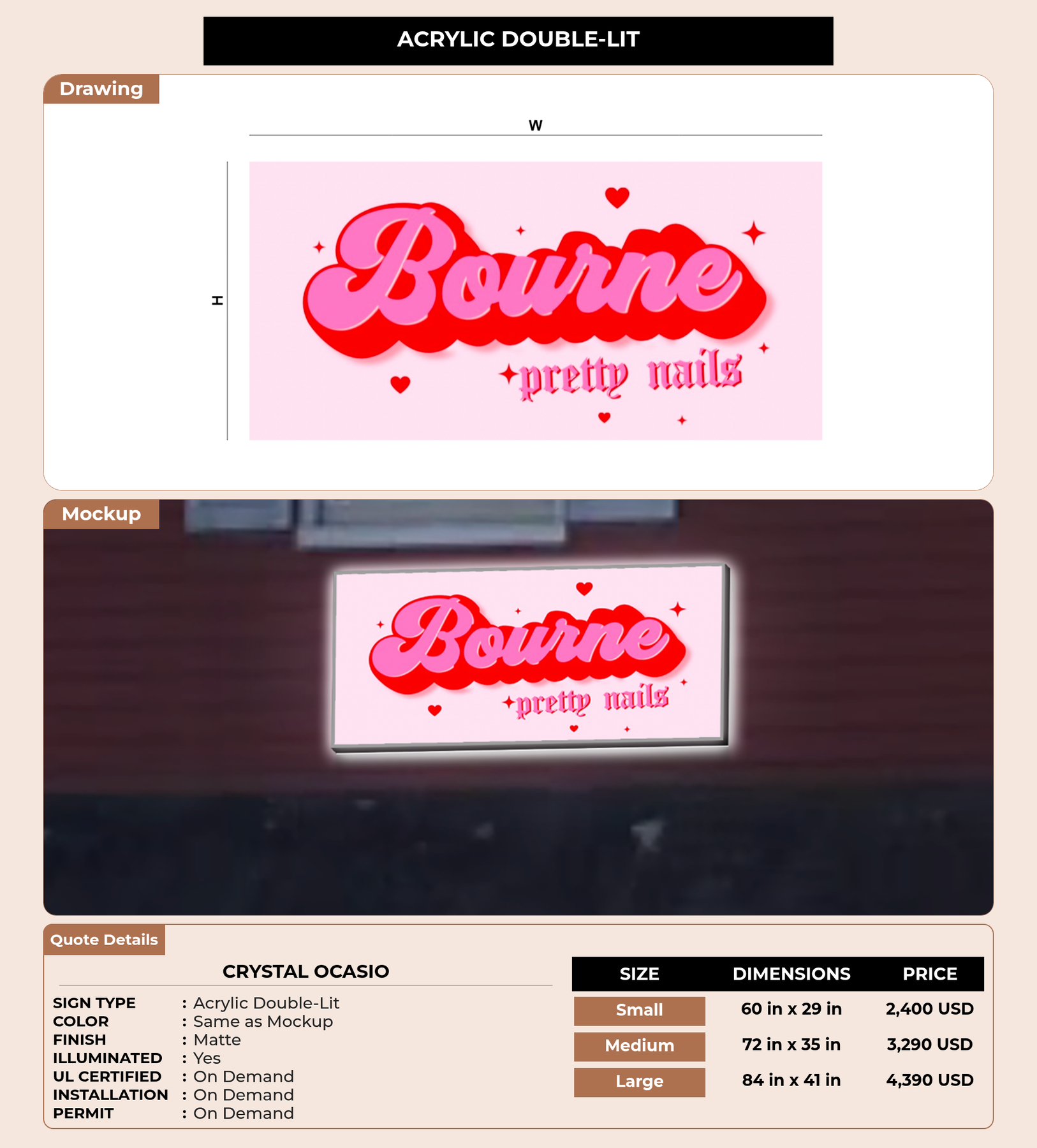 Enhance your business presence with our expertly crafted signage, made from top-quality material, to ensure longevity and durability. Fully customizable to reflect your unique brand identity, our signage offers a professional and polished appearance. Easy to install and low maintenance, it’s the perfect addition to any business setting. Trust us to deliver a product that not only meets but exceeds your expectations.