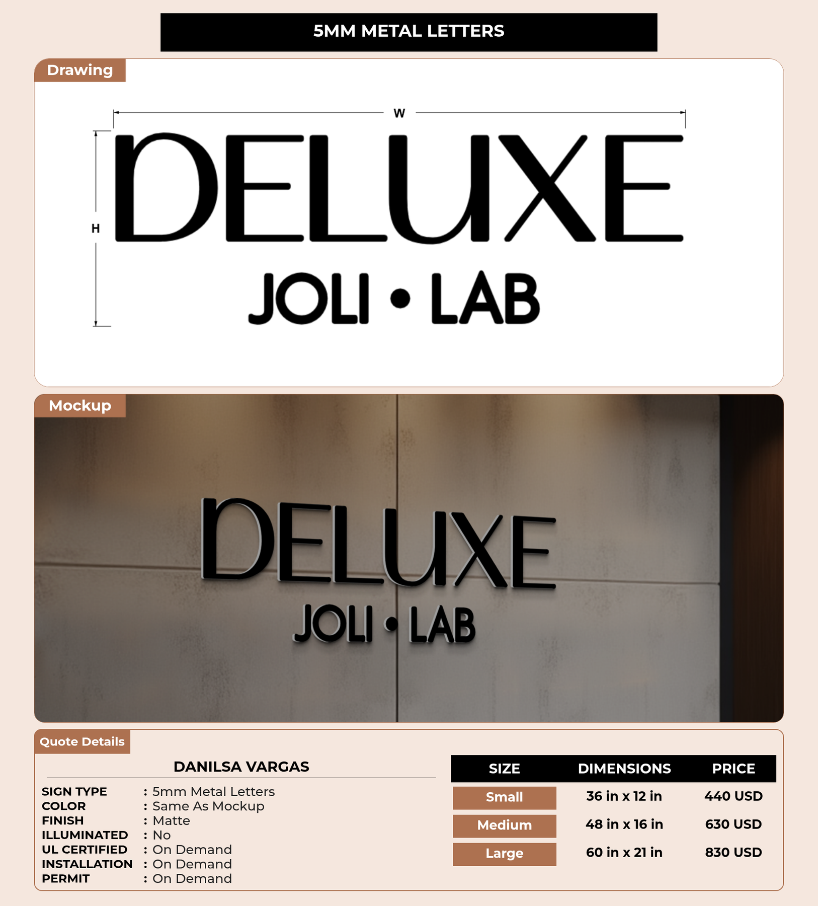 Crafted with premium material, this signage will elevate your business image, precisely mirroring your logo for a professional look.