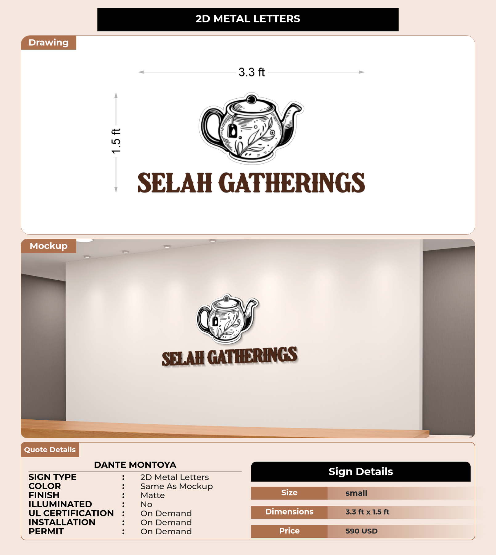 Eye-catching custom 3D sign for Dante Montoya