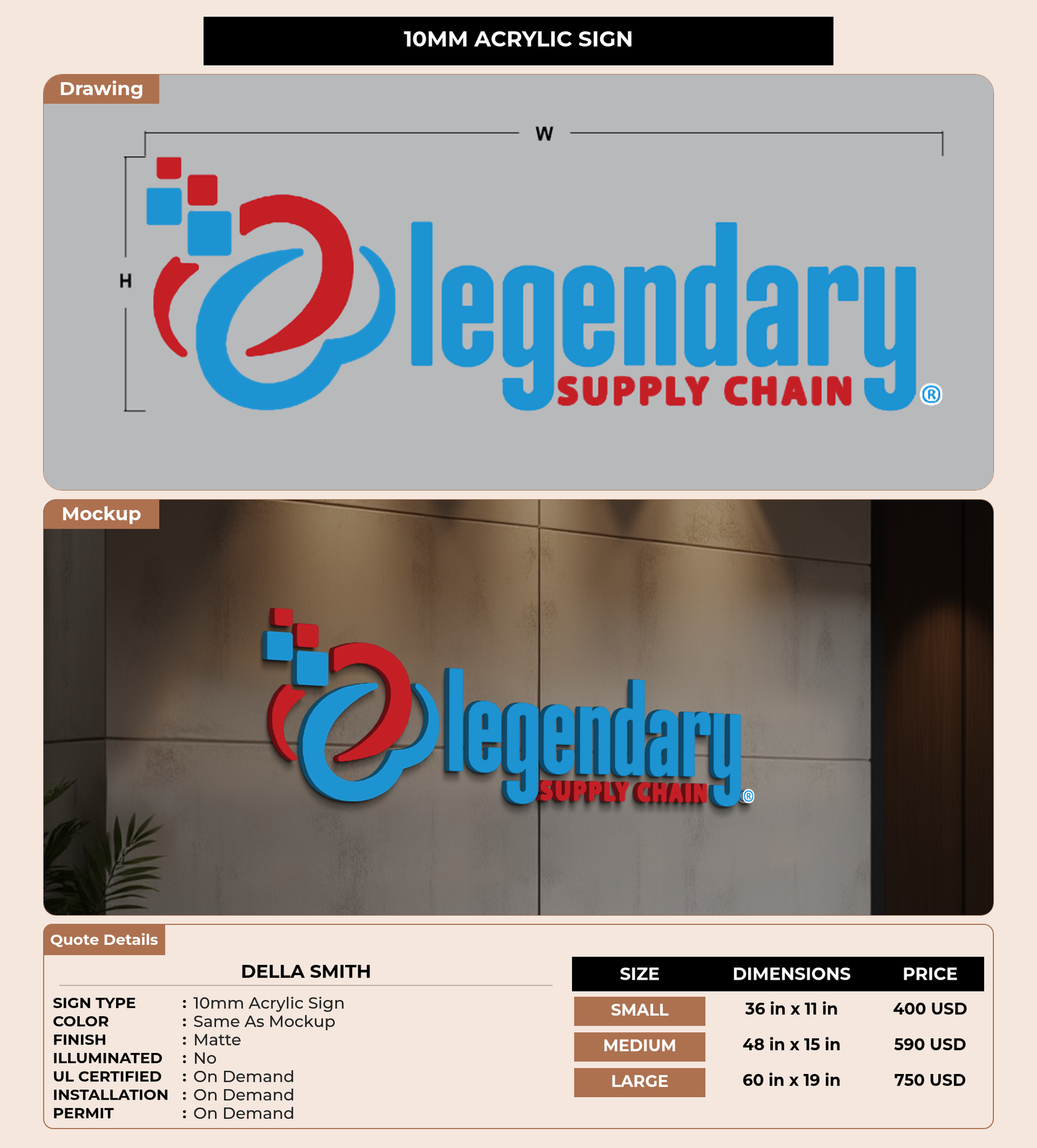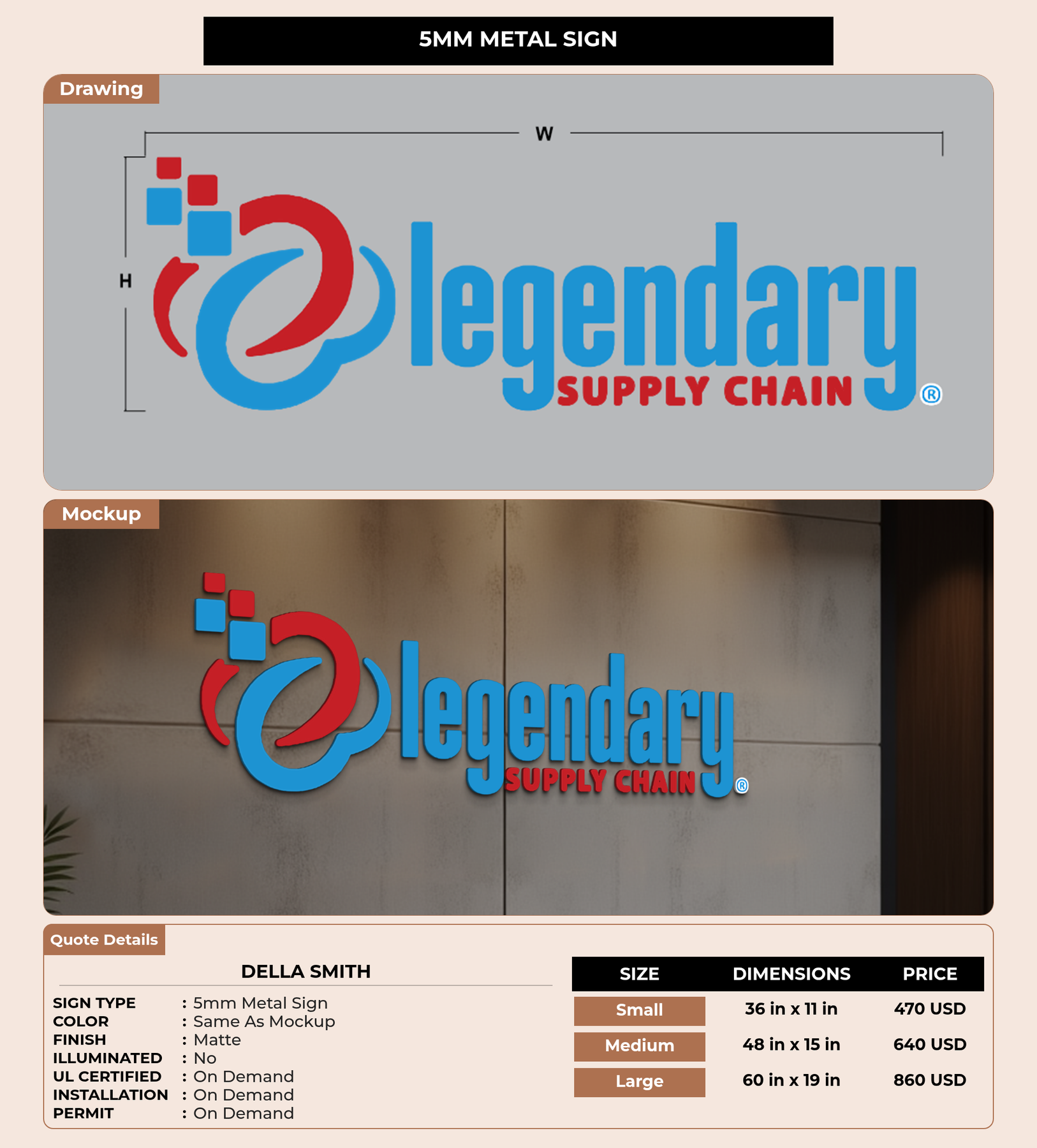 Enhance your business presence with our expertly crafted signage, made from top-quality material, to ensure longevity and durability. Fully customizable to reflect your unique brand identity, our signage offers a professional and polished appearance. Easy to install and low maintenance, it’s the perfect addition to any business setting. Trust us to deliver a product that not only meets but exceeds your expectations.