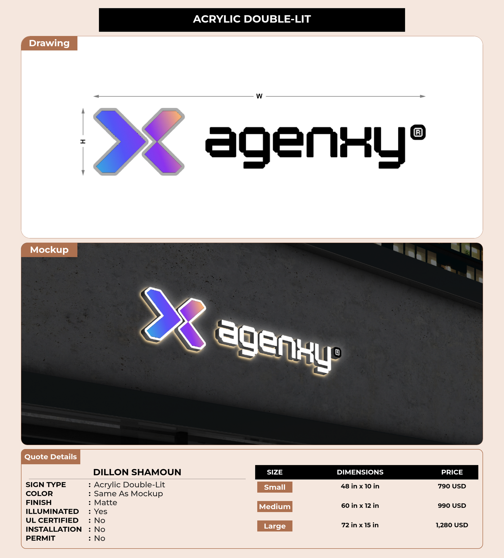 Enhance your business presence with our expertly crafted signage, made from top-quality material, to ensure longevity and durability. Fully customizable to reflect your unique brand identity, our signage offers a professional and polished appearance. Easy to install and low maintenance, it’s the perfect addition to any business setting. Trust us to deliver a product that not only meets but exceeds your expectations.