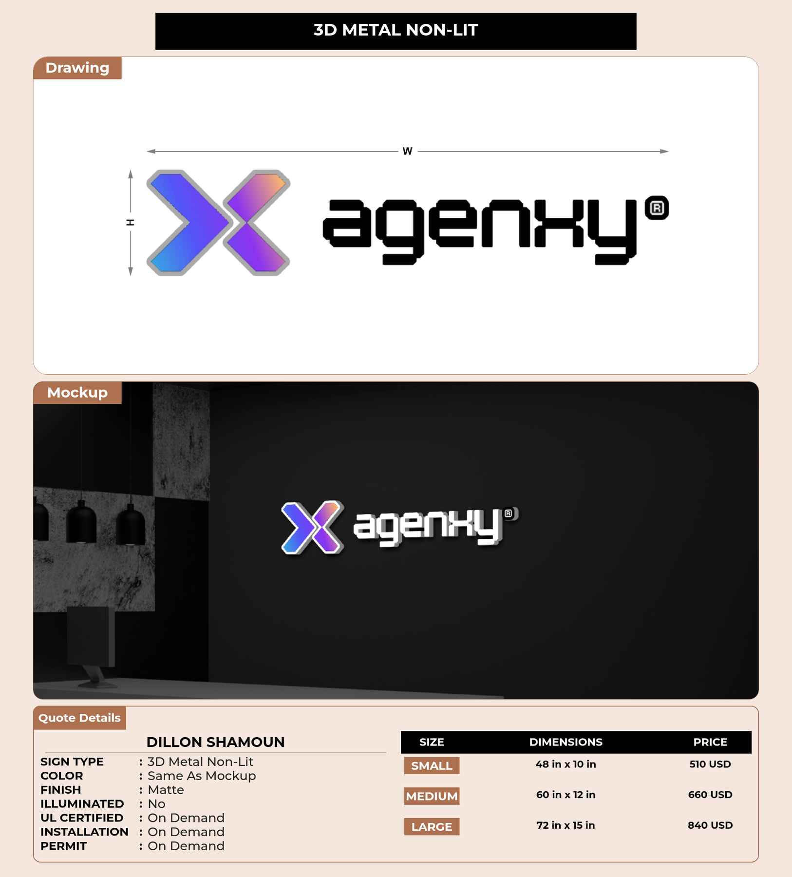 Crafted with premium material, this signage will elevate your business image, precisely mirroring your logo for a professional look.