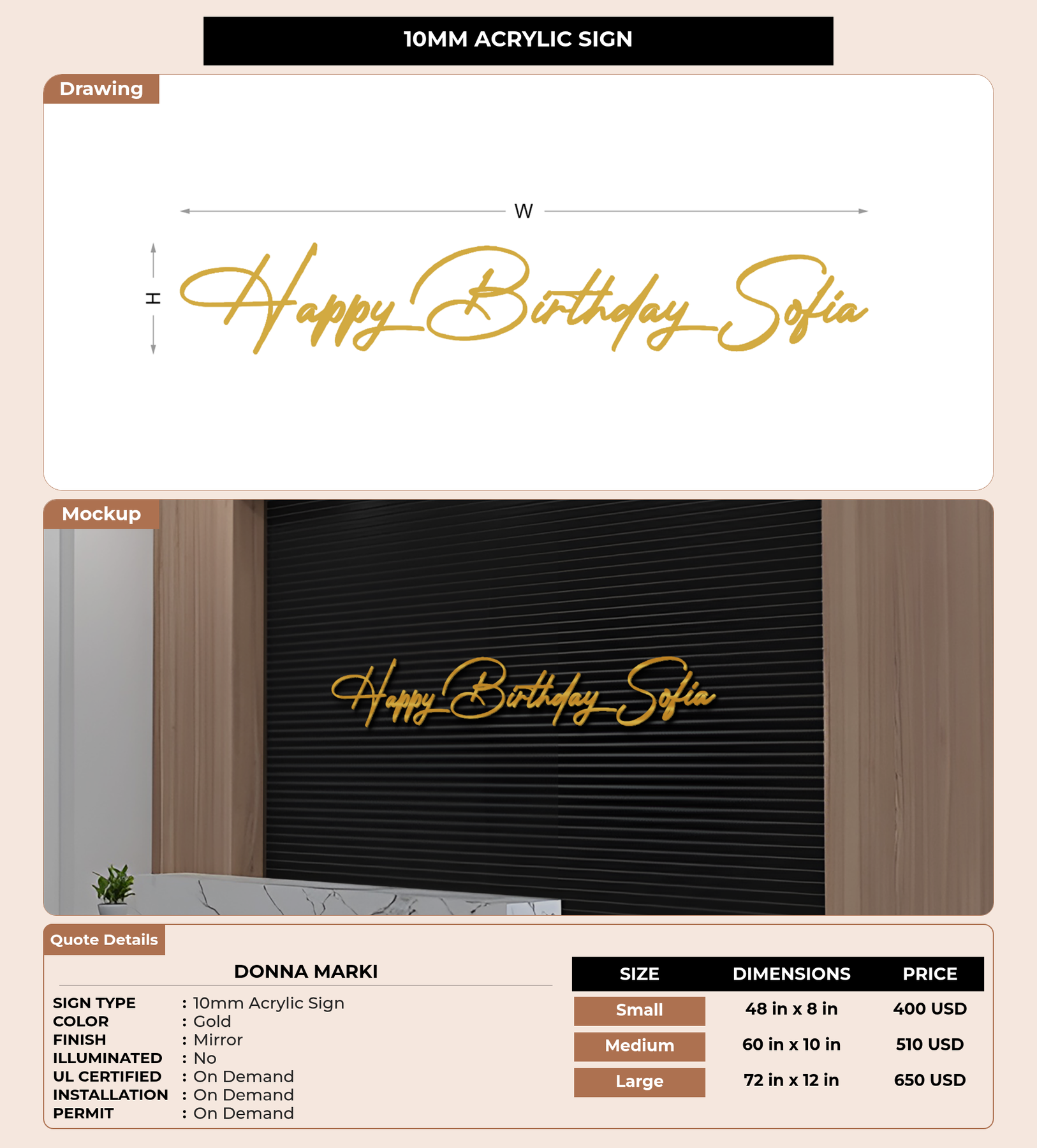 CUSTOM MOCKUP SIGN FOR Donna Marki
