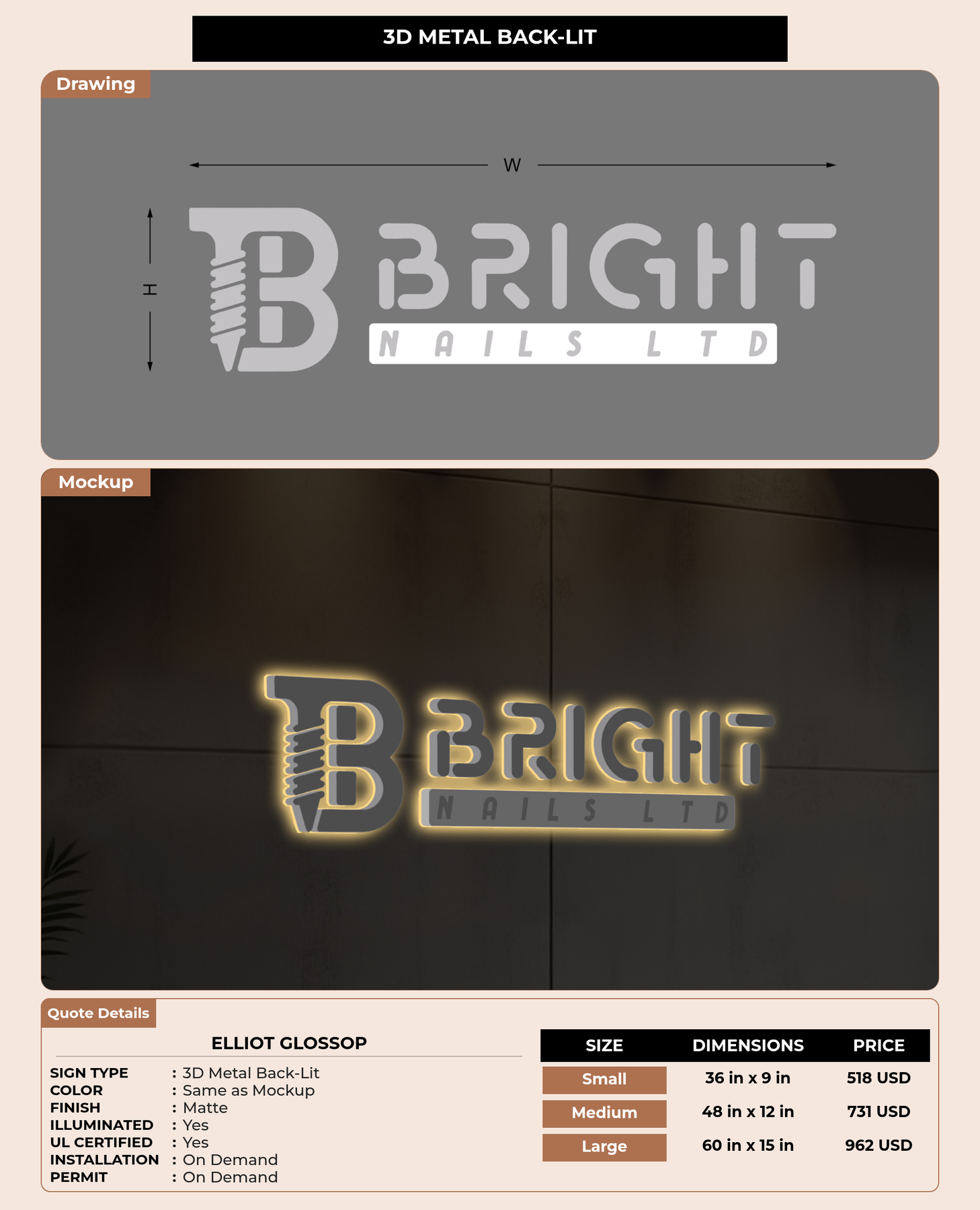 Crafted with premium material, this signage will elevate your business image, precisely mirroring your logo for a professional look.