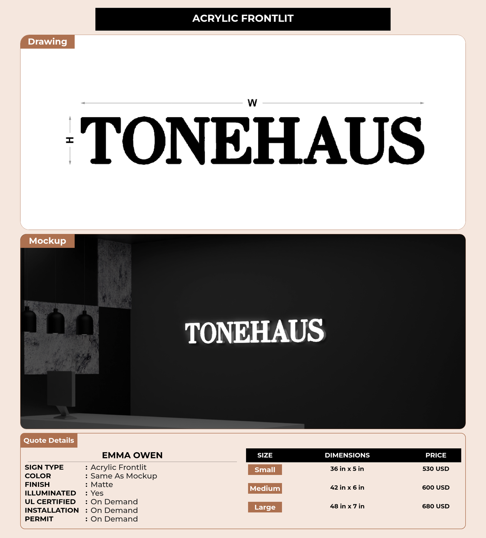 Enhance your business presence with our expertly crafted signage, made from top-quality material, to ensure longevity and durability. Fully customizable to reflect your unique brand identity, our signage offers a professional and polished appearance. Easy to install and low maintenance, it’s the perfect addition to any business setting. Trust us to deliver a product that not only meets but exceeds your expectations.