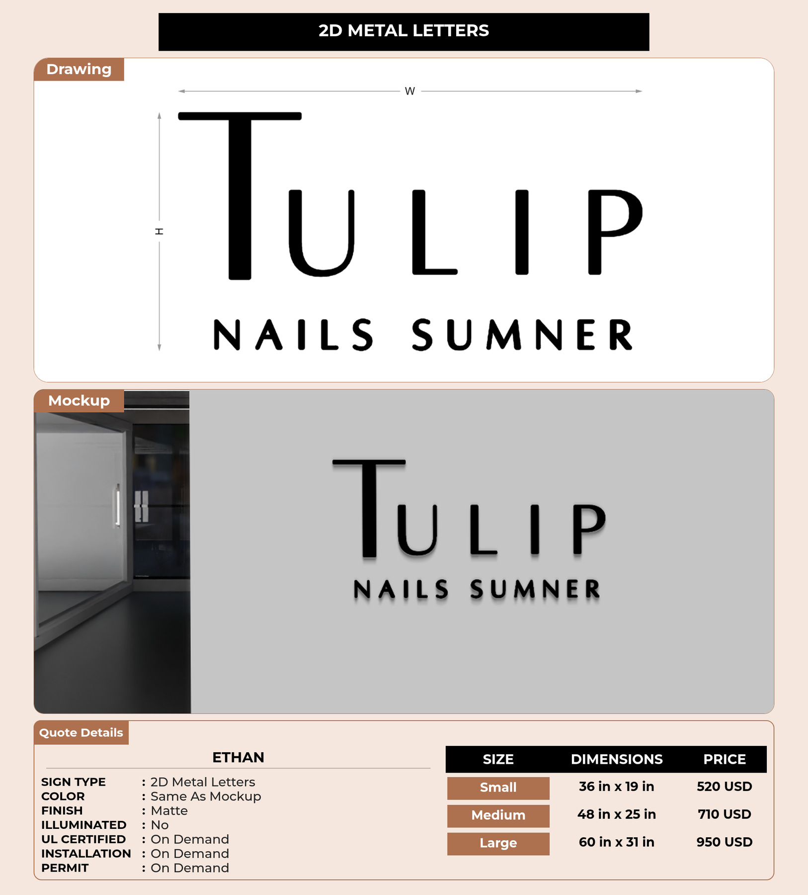Crafted with premium material, this signage will elevate your business image, precisely mirroring your logo for a professional look.