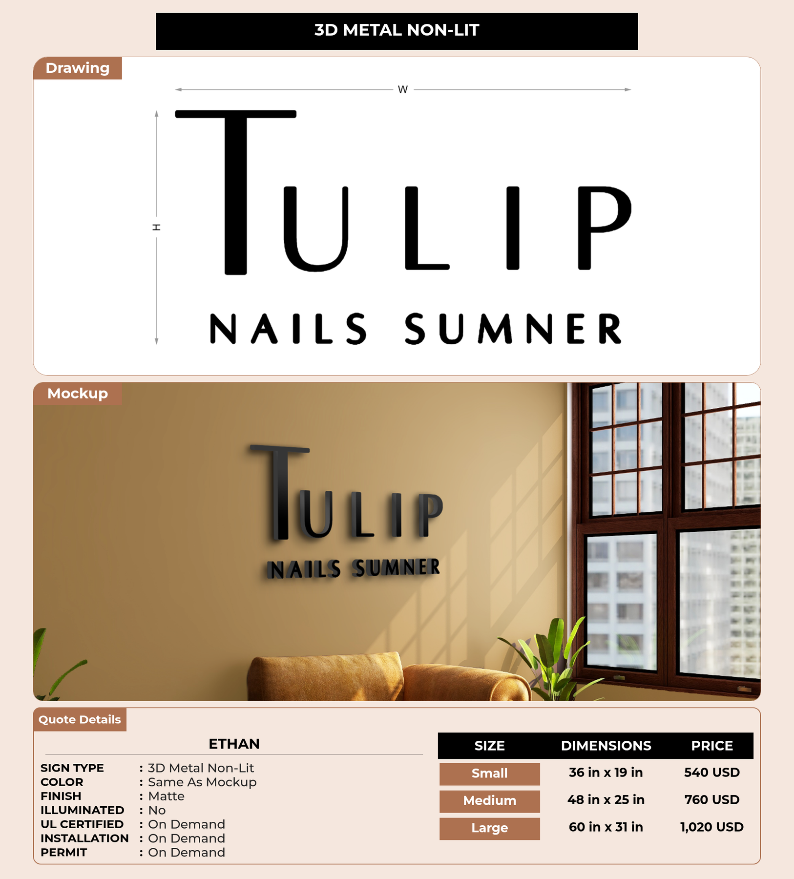 Enhance your business presence with our expertly crafted signage, made from top-quality material, to ensure longevity and durability. Fully customizable to reflect your unique brand identity, our signage offers a professional and polished appearance. Easy to install and low maintenance, it’s the perfect addition to any business setting. Trust us to deliver a product that not only meets but exceeds your expectations.