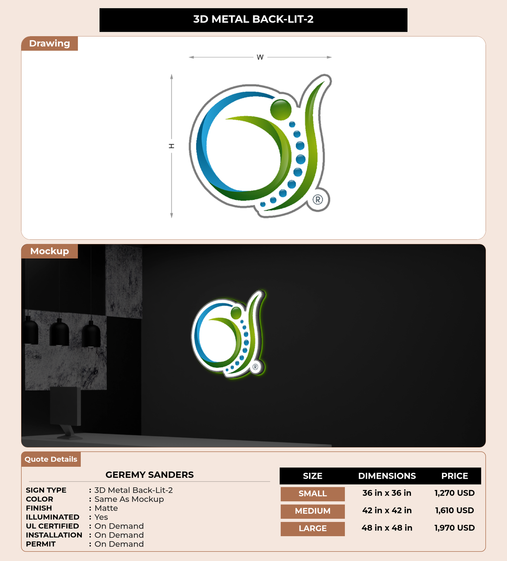 Eye-catching custom 3D sign for GEREMY SANDERS