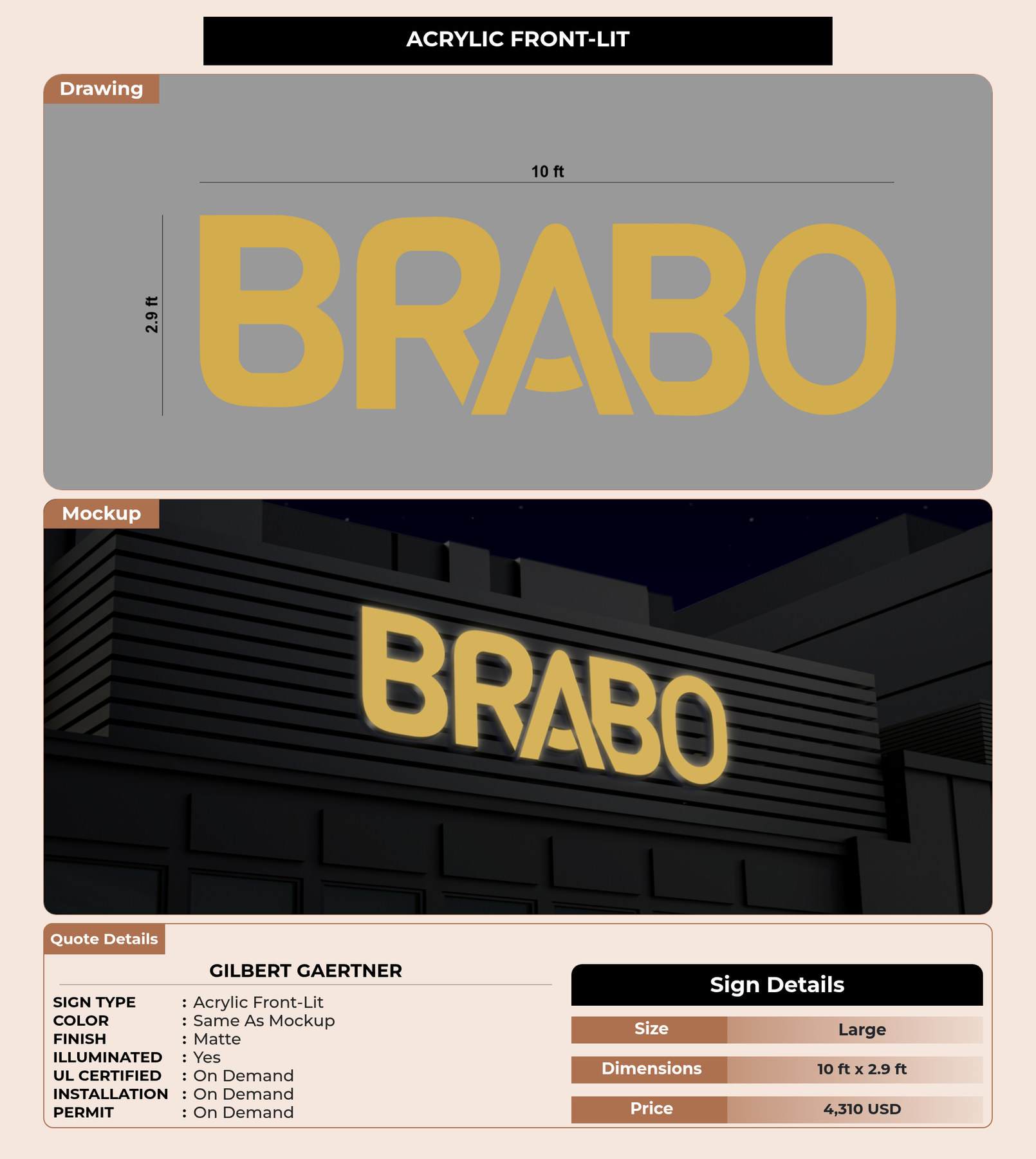 Crafted with premium material, this signage will elevate your business image, precisely mirroring your logo for a professional look.