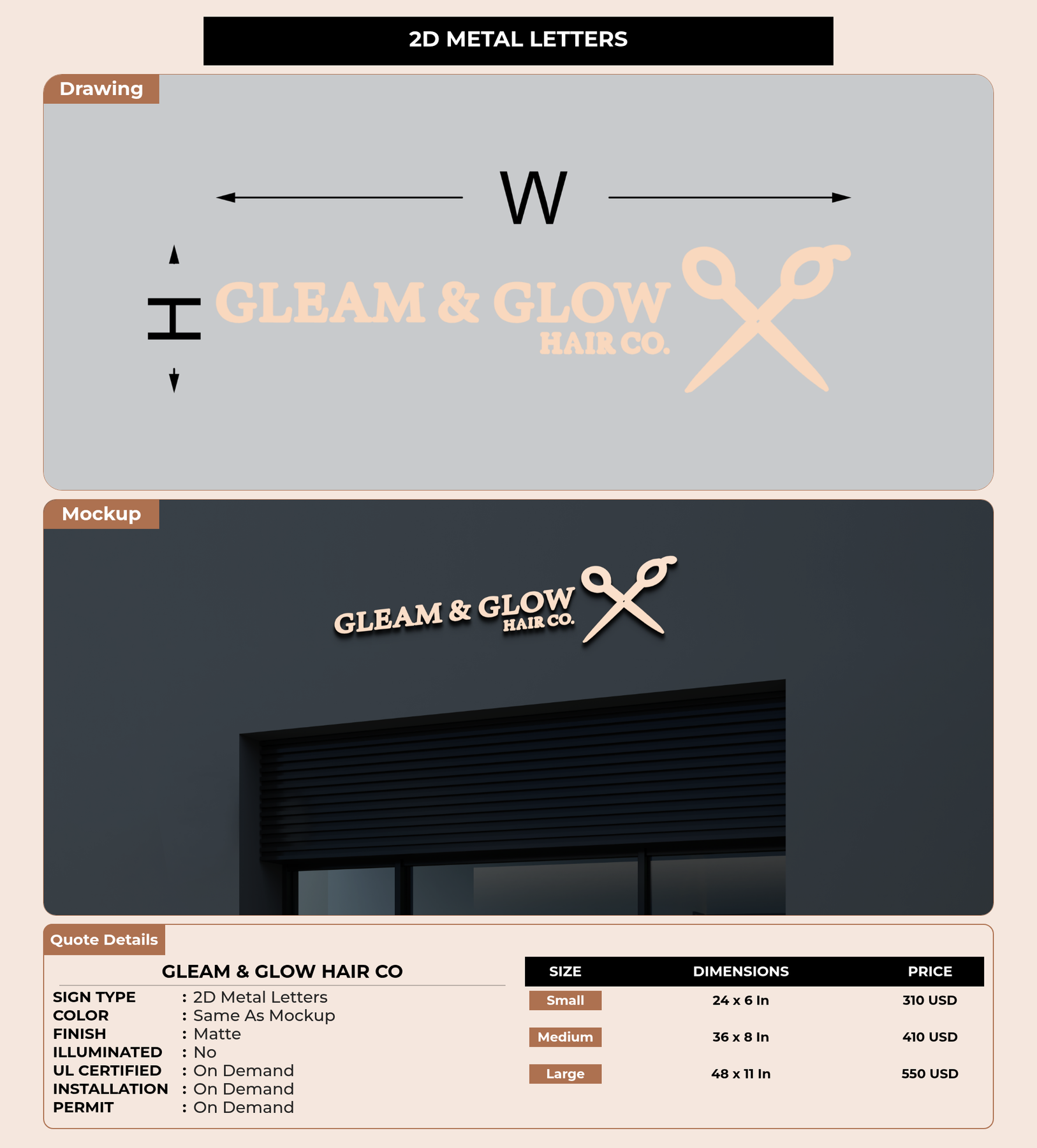 CUSTOM MOCKUP SIGN FOR Gleam & Glow Hair Co