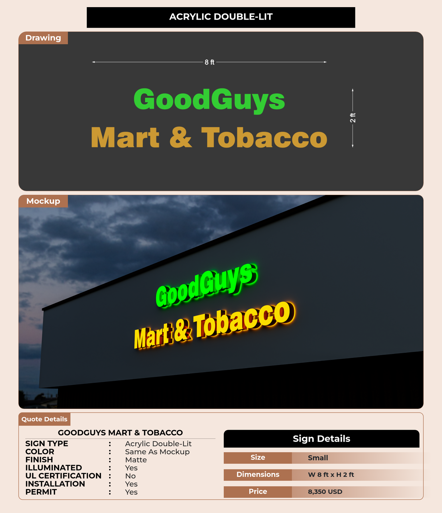 CUSTOM MOCKUP SIGN FOR Goodguys Mart & tobacco