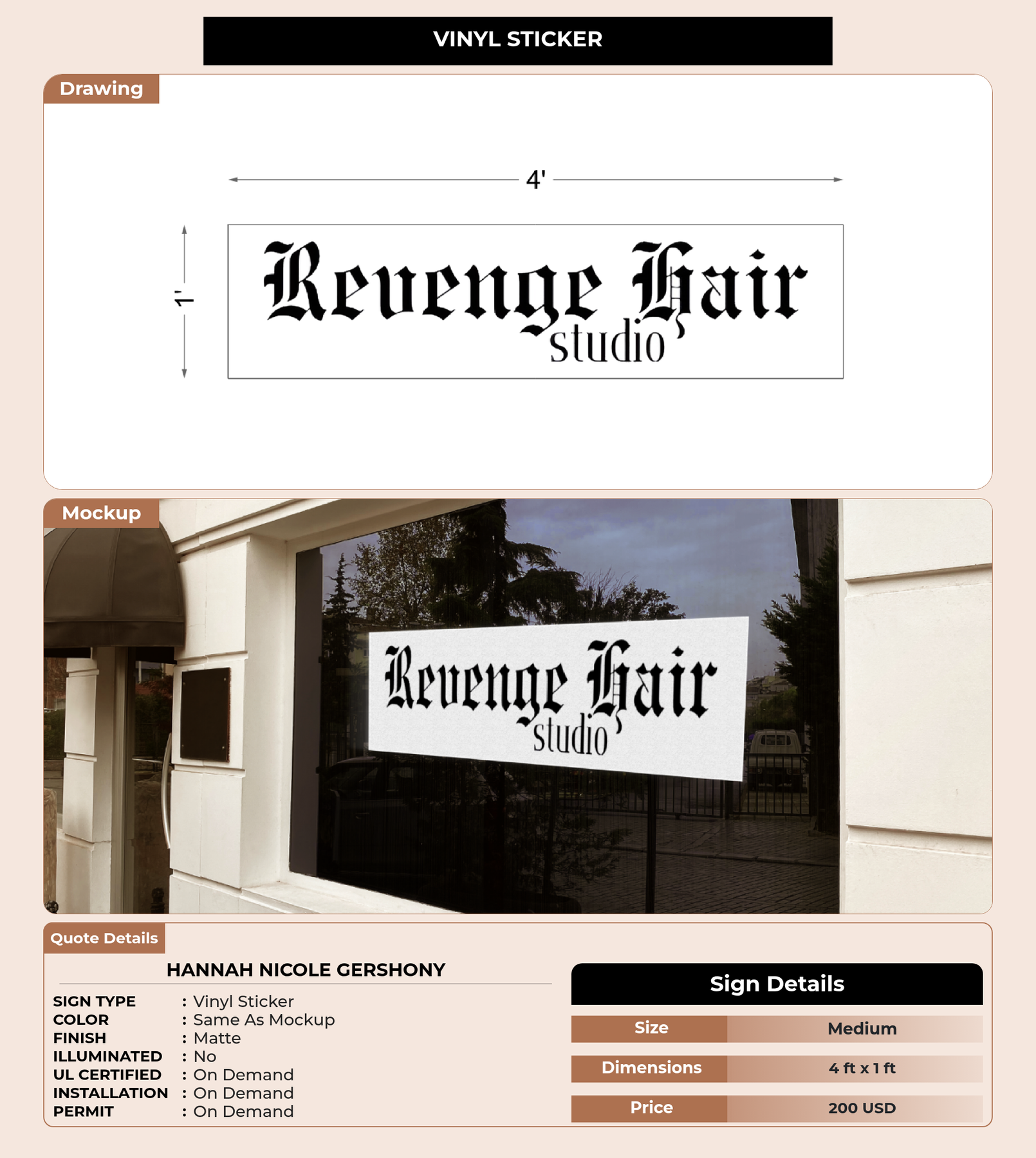 Installation services are available for an additional fee, depending on your location and the complexity of the signage.