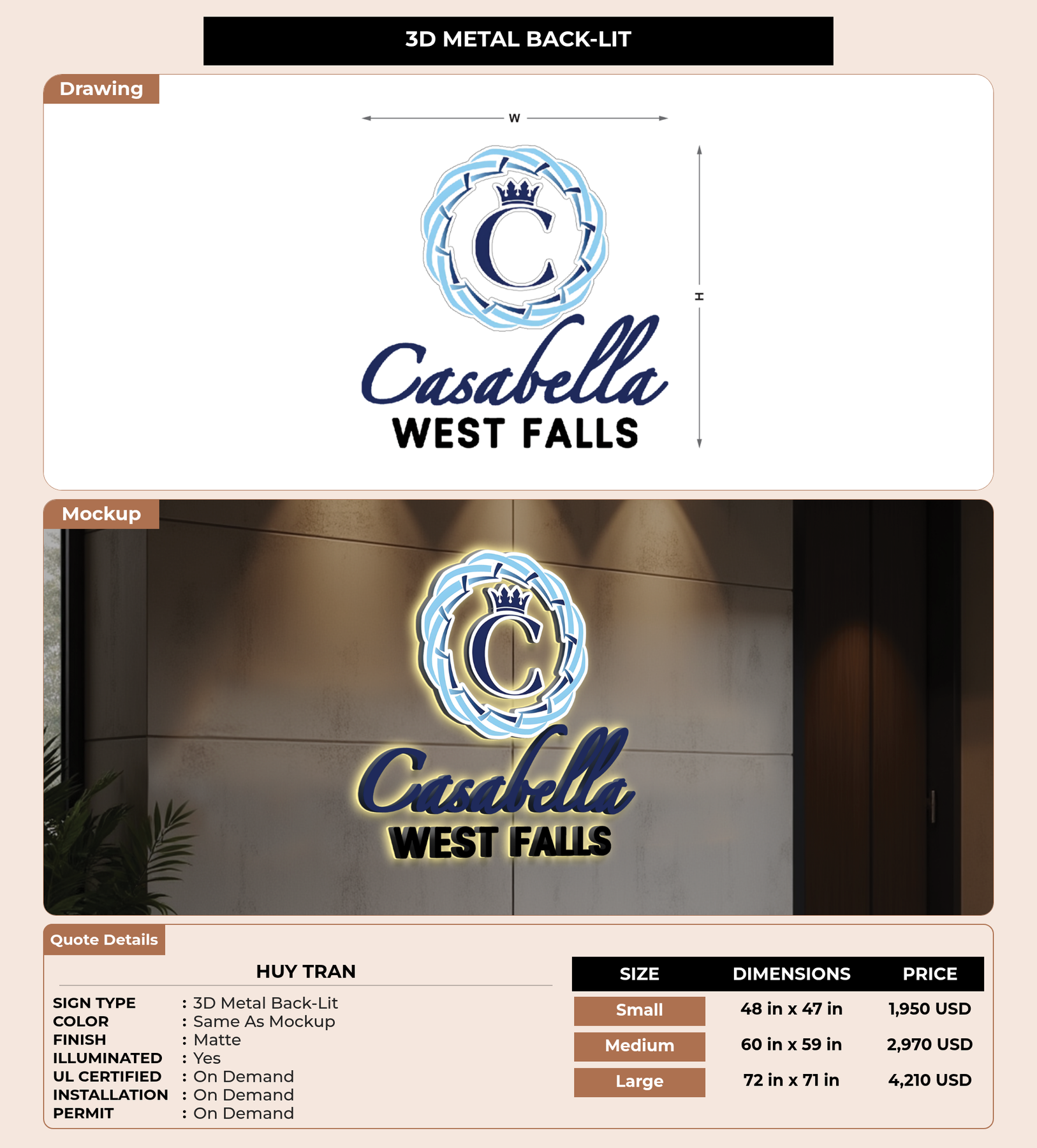 Eye-catching custom 3D sign for Huy Tran