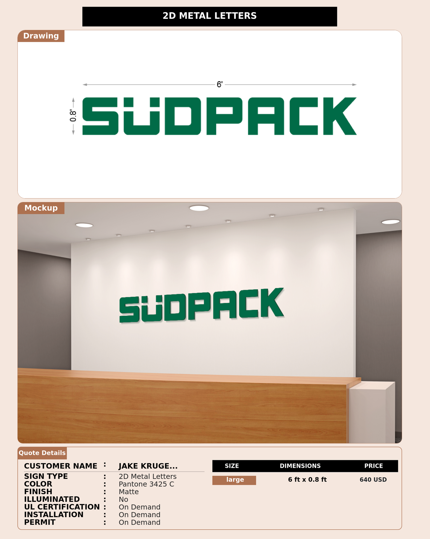 Crafted with premium material, this signage will elevate your business image, precisely mirroring your logo for a professional look.