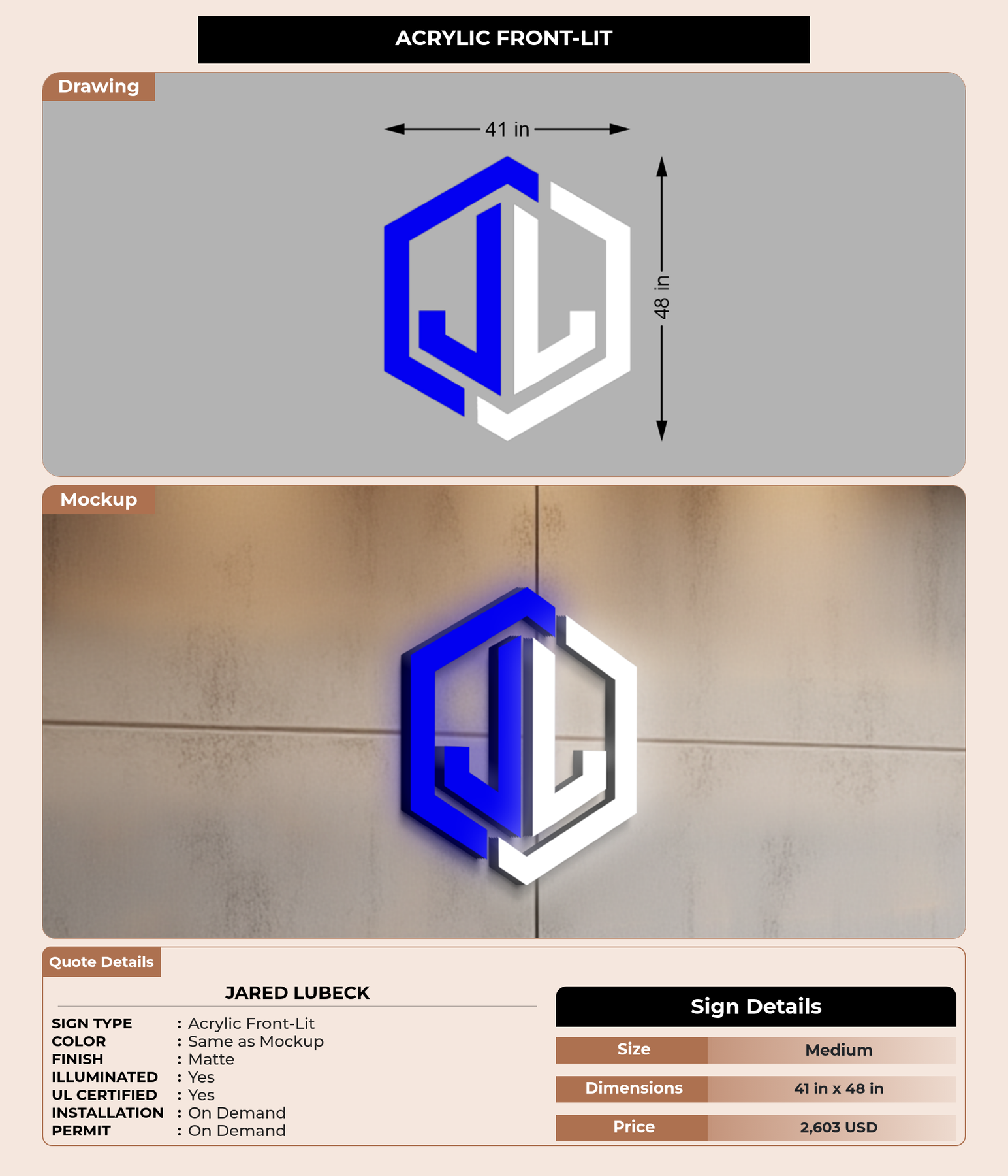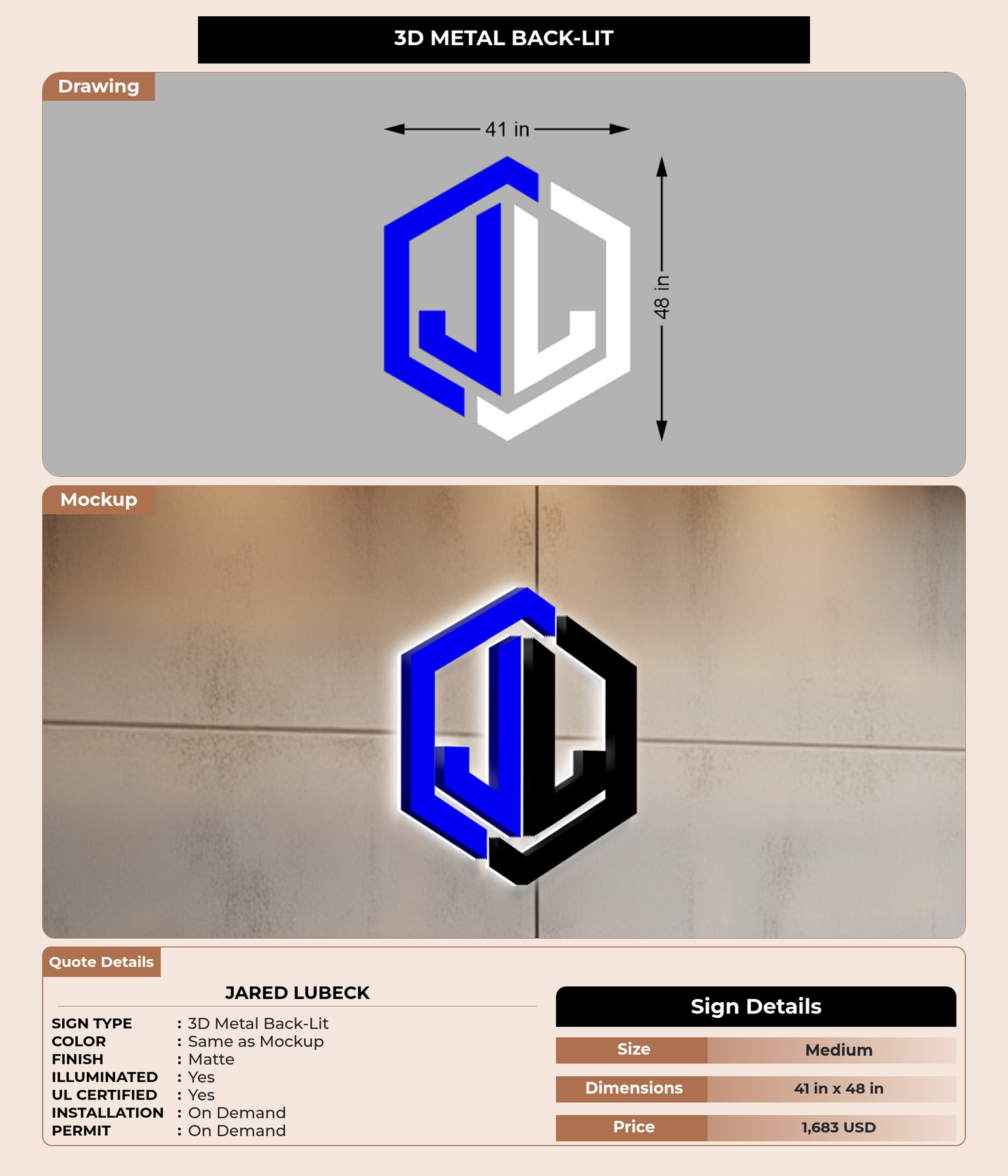 Eye-catching custom 3D sign for Jared Lubeck