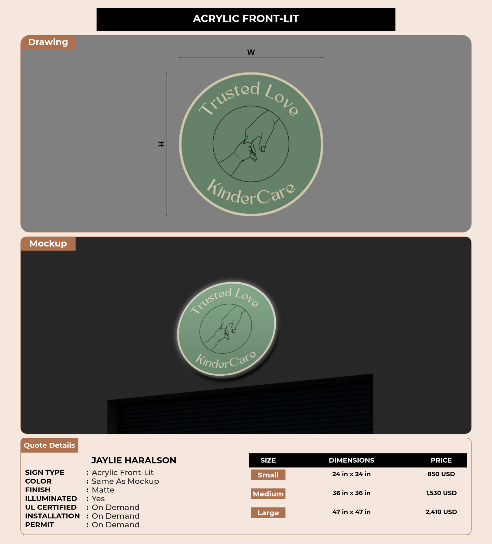 Enhance your business presence with our expertly crafted signage, made from top-quality material, to ensure longevity and durability. Fully customizable to reflect your unique brand identity, our signage offers a professional and polished appearance. Easy to install and low maintenance, it’s the perfect addition to any business setting. Trust us to deliver a product that not only meets but exceeds your expectations.