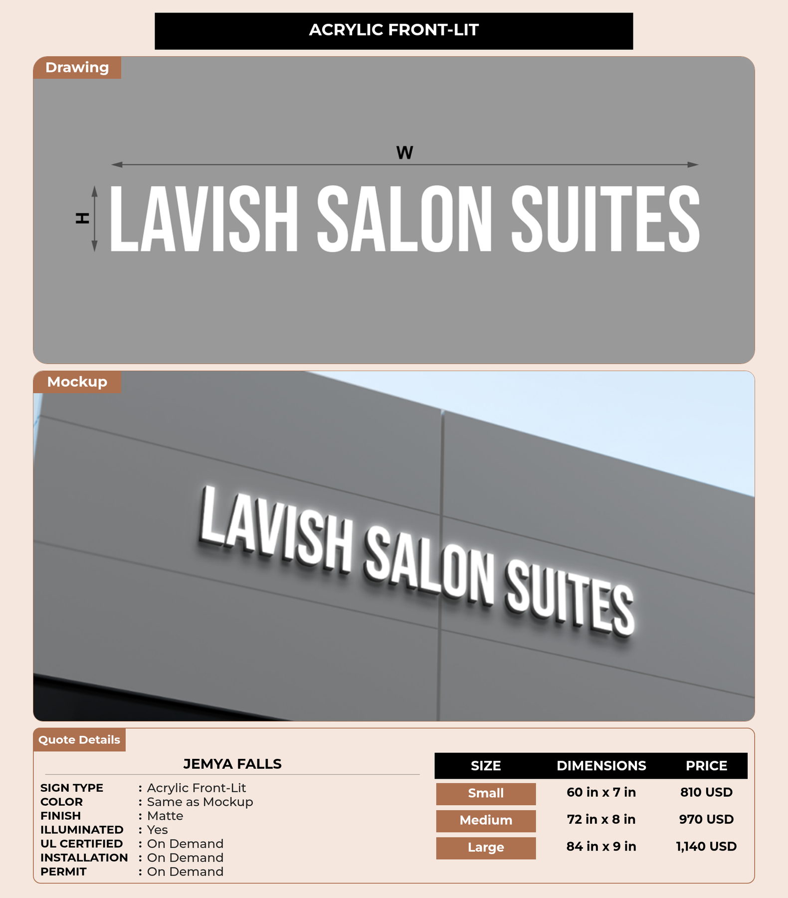 Enhance your business presence with our expertly crafted signage, made from top-quality material, to ensure longevity and durability. Fully customizable to reflect your unique brand identity, our signage offers a professional and polished appearance. Easy to install and low maintenance, it’s the perfect addition to any business setting. Trust us to deliver a product that not only meets but exceeds your expectations.
