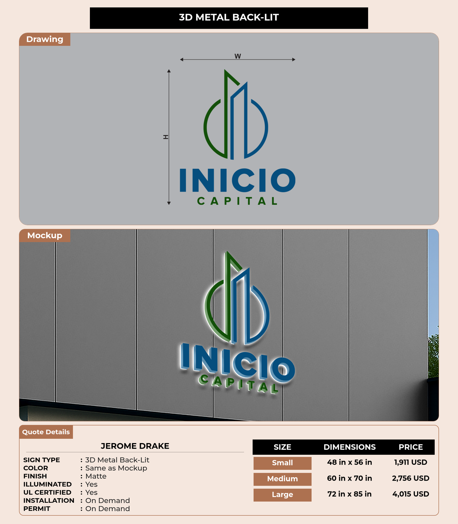 Eye-catching custom 3D sign for Jerome Drake