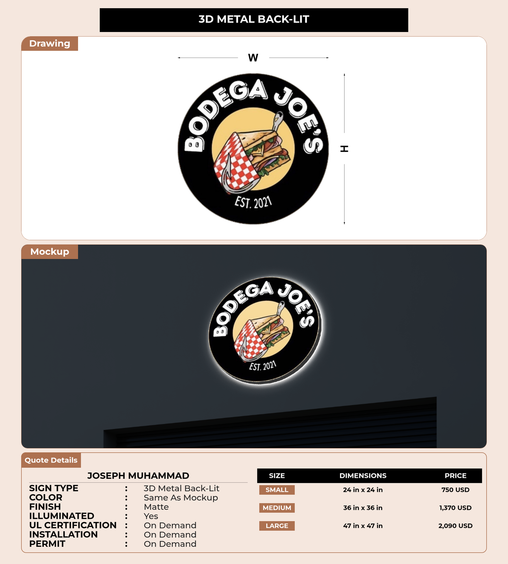 Eye-catching custom 3D sign for Joseph Muhammad