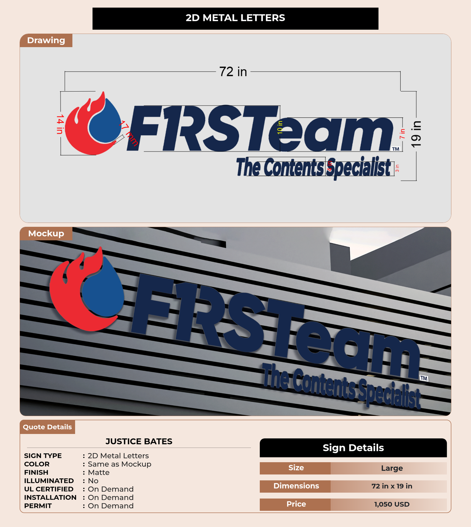 Eye-catching custom 3D sign for Justice Bates