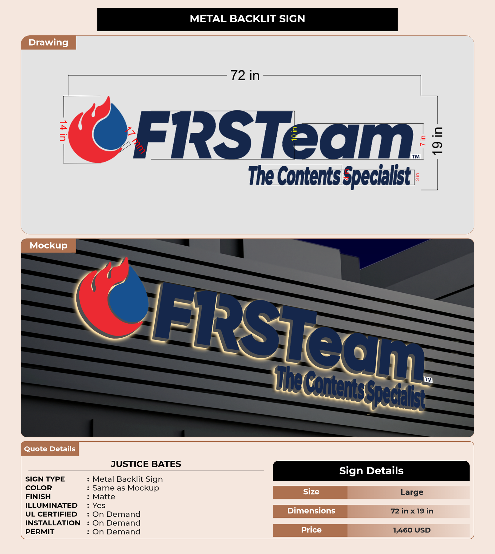 CUSTOM MOCKUP SIGN FOR Justice Bates