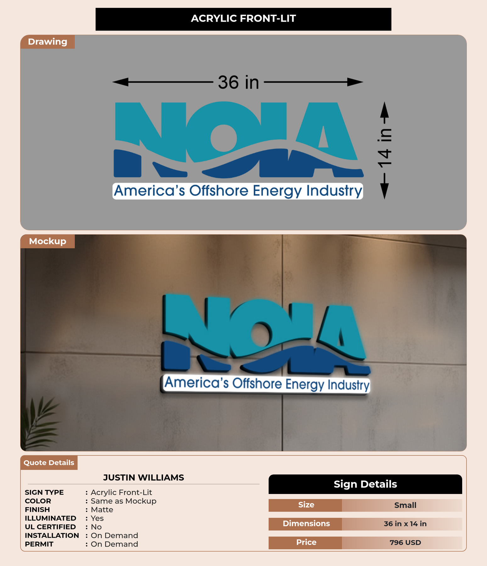 Crafted with premium material, this signage will elevate your business image, precisely mirroring your logo for a professional look.