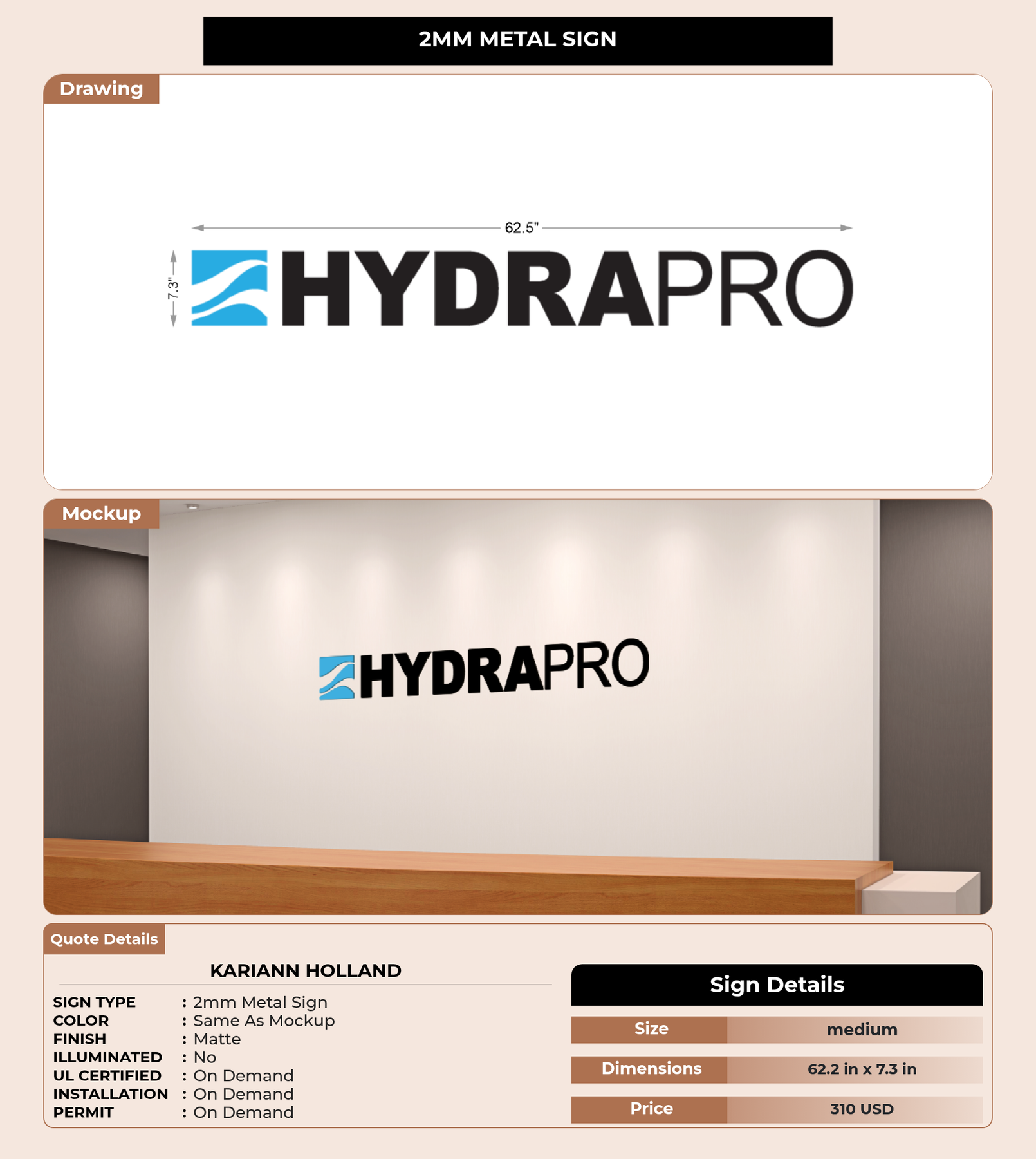Crafted with premium material, this signage will elevate your business image, precisely mirroring your logo for a professional look.