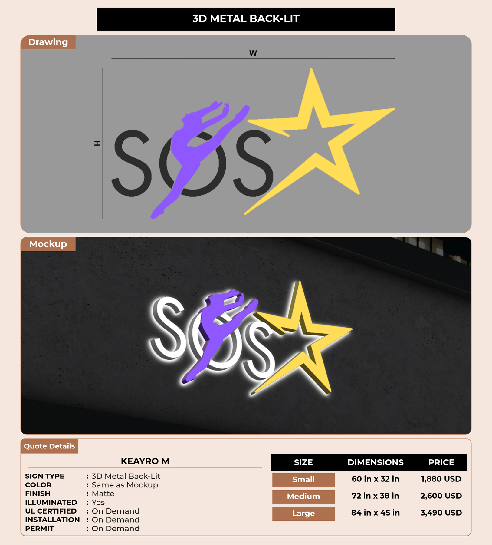 Eye-catching custom 3D sign for KeAyro m