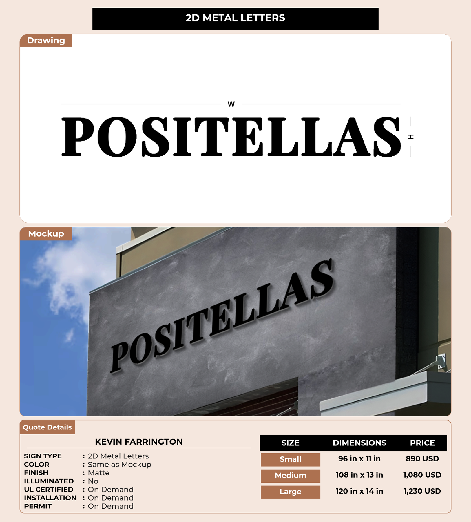 Eye-catching custom 3D sign for Kevin Farrington